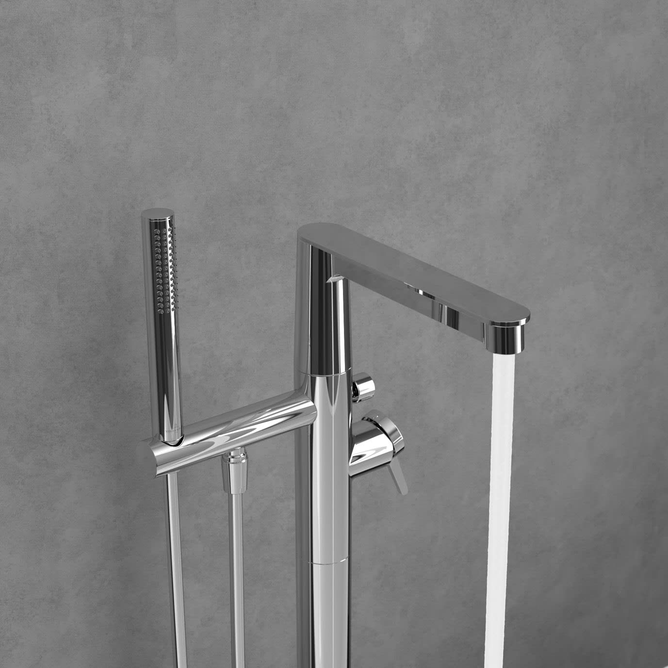 Die exklusive Einhebel-Badewannenarmatur Conum: Ein einzigartiges Designobjekt für das Bad, das filigrane und massive Elementezu einem skulpturalem Gesamtbildvereint. Die konische Formensprache besticht durch eine dynamische Eleganz, die jeden Tag aufsNeue fasziniert und der Badewanne einen einzigartigen Charakter verleiht. Die Armatur von Villeroy & Boch ist bodenstehend und besticht durch die Verarbeitung hochwertigen Messings. Der Strahlregler am Auslaufsorgt für einen nahezu spritzfreien Wasserstrahl, der die Entstehung von Aerosolen für einehygienische Benutzung der Armatur? minimiert. Bedient werden kann der Strahl über den seitlich angebrachten Hebel, der gut in der Hand liegt und sanft gleitet. Gegenüber gibt es eine Halterung für eine passende Handbrause, zu der über den Umsteller gewechselt werden kann.