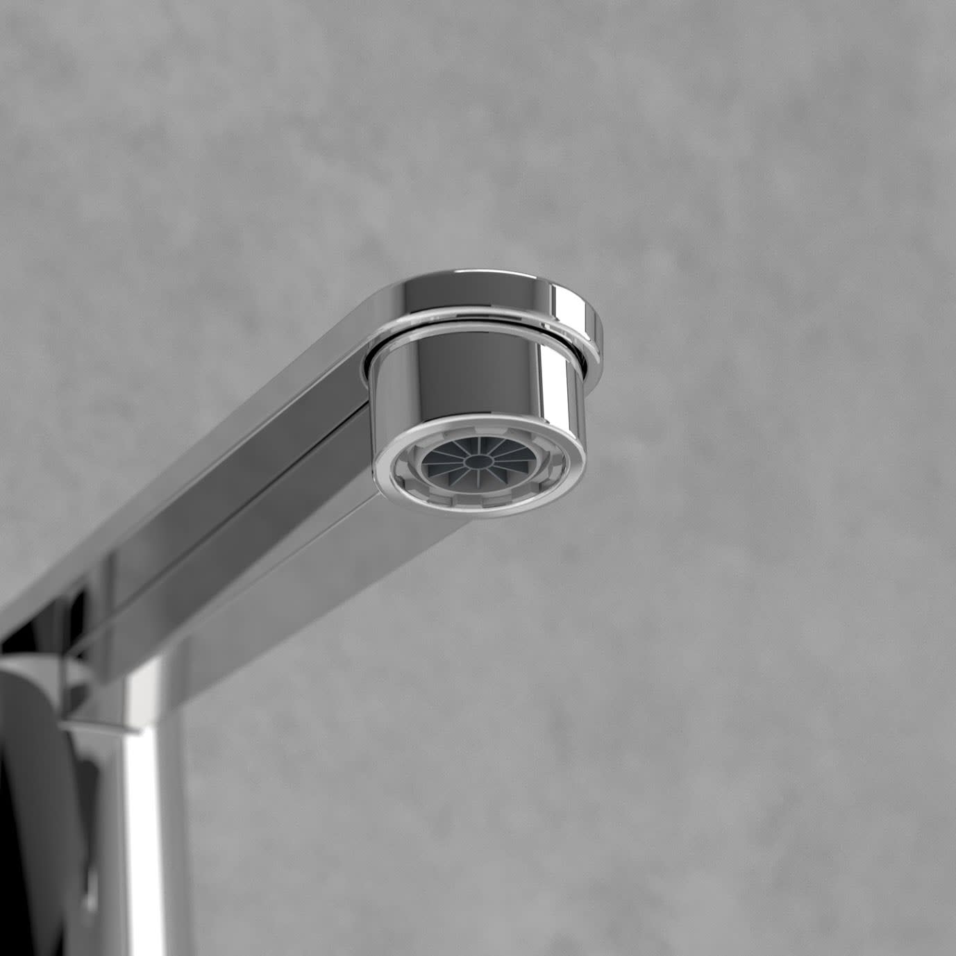 - kristallklarer Laminarstrahl für eine nahezu spritzfreie Wasserführung und ein Gefühl hoher Sauberkeit