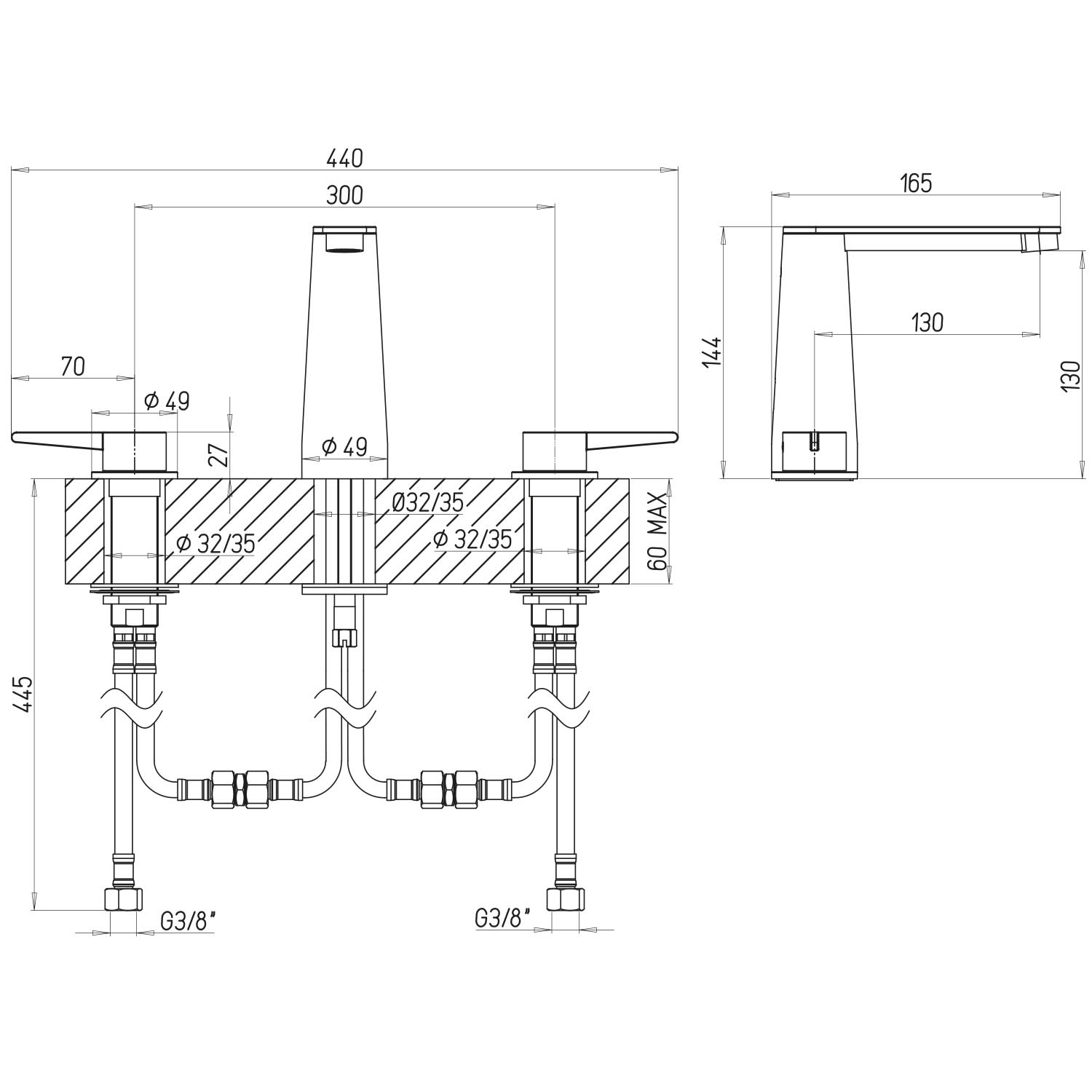 Villeroy & Boch Conum Dreiloch-Waschtischarmatur ohne Ablaufgarnitur
