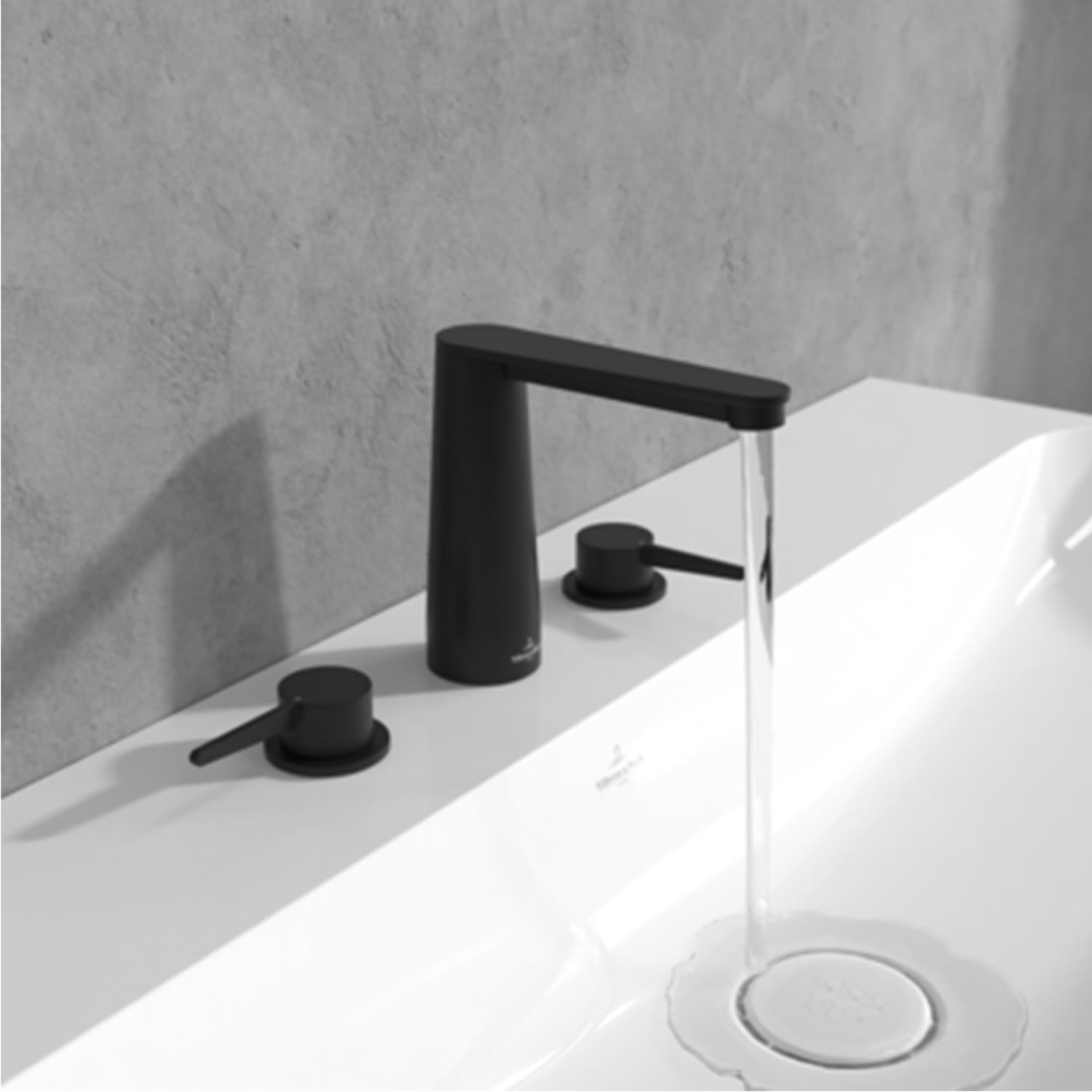Die Villeroy & Boch Dreiloch-Waschtischarmatur aus der Conum Kollektion ist qualitativ hochwertige Armatur und Designobjekt zugleich. Das skulpturale und konische Aussehen von Conum führt zu einem wirklich einzigartigen Charakter. Und auch funktional punktet die Standarmatur. Denn sie glänzt mit einer komfortablen Höhe, die genügend Platz zwischen Auslauf und Waschbecken schafft. Über die beiden seitlich positionierten Hebel wird durch Drehen der kristallklare Wasserstrahl aktiviert. Durch den Verzicht von beigesetzter Luft ist er besonders leise und vermeidet unerwünschte Wasserspritzer.