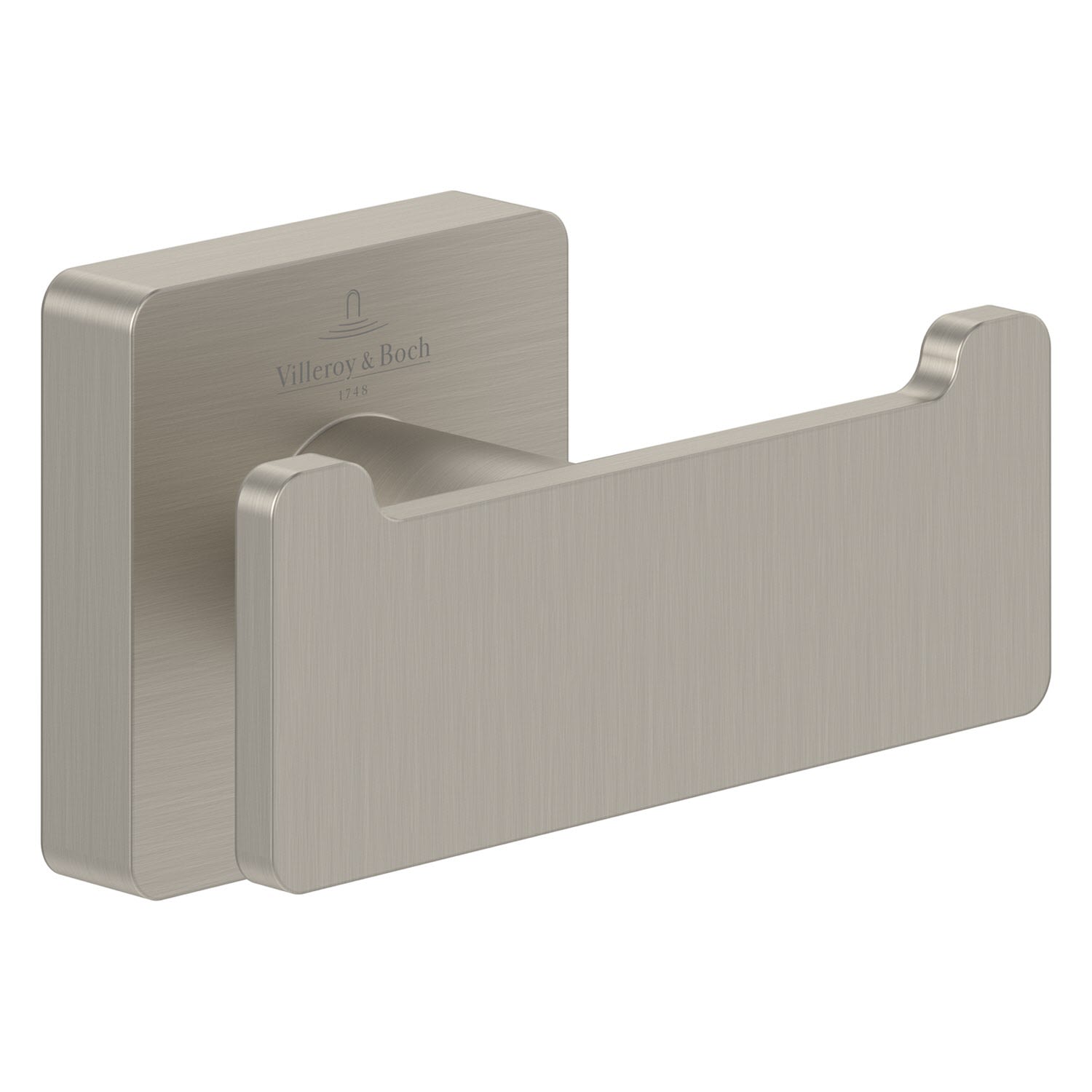 Der ansprechende Doppel-Handtuchhaken ist Teil der Kollektion Elements Striking von Villeroy & Boch. Die hochwertige Verarbeitung aus massivem Messing sorgt für Langlebigkeit und Stabilität des Hakens. Er ist für die Wandmontage konzipiert und eignet sich perfekt für gleich zwei Handtücher, die ordentlich aufgehängt auf den nächsten Einsatz warten. Der eckige Doppel-Handtuchhaken ist aufgrund seines zeitlosen Designs außerdem sehr gut mit weiteren Produkten von Villeroy & Boch kombinierbar.
