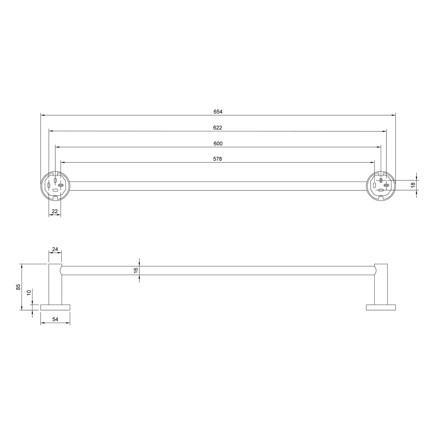 Kronenbach Lima 2.0 Black Handtuchhalter 1-armig 43 cm, starr