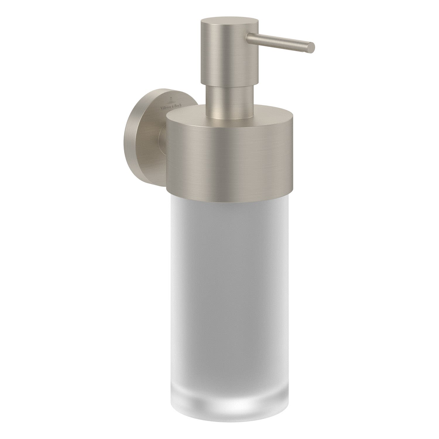 Dieser elegante Seifenspender der Marke Villeroy & Boch ist aus hochwertigem Zink verarbeitet und kann schnell und unkompliziert an der Wand befestigt werden. Die runde Flasche besteht aus satiniertem Glas und passt optisch ideal zur polierten Oberfläche der Halterung. Das zeitlose und harmonische Design der Kollektion Elements Tender fügt den Seifenspender stilsicher in jedes Badezimmer ein und schafft ein elegantes Ambiente.
