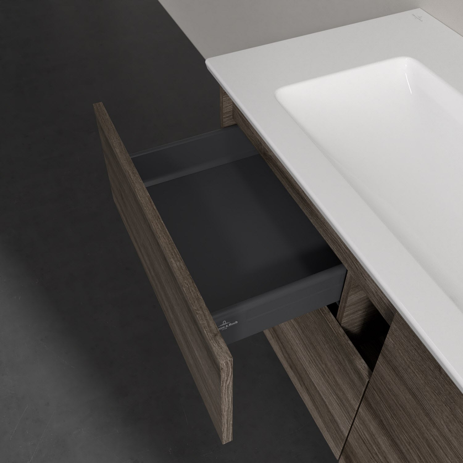 Stilsicher fügt sich der Finero Waschtischunterschrank von Villeroy & Boch mit seinem modernen, klaren Design in jedes Badezimmer ein. Seine vier Auszüge verfügen über viel Platz für beispielsweise Handtücher, Föhn oder Pflegeprodukte aller Art. Durch die unterschiedliche Höhe eignet sich der obere Auszug besonders für kleinere, handlichere Gegenstände und im unteren können auch sperrigere Accessoires verstaut werden. Integriertem Antirutsch-Boden sei dank, bleiben diese auch am gewünschten Platz. Öffnen lassen sich die Auszüge bequem mit der innovativen Push-to-Open-Technologie – ein leichter Fingerdruck reicht aus . Geschmeidig sanft und leise gleiten sie anschließend über Selbsteinzug wieder zu.