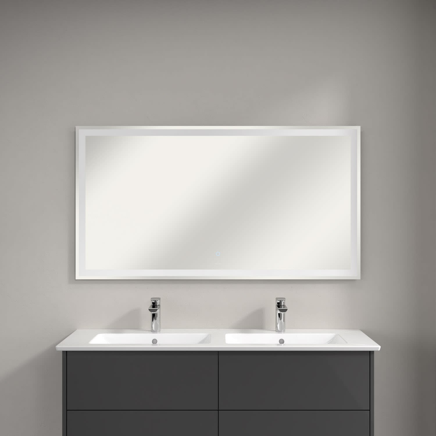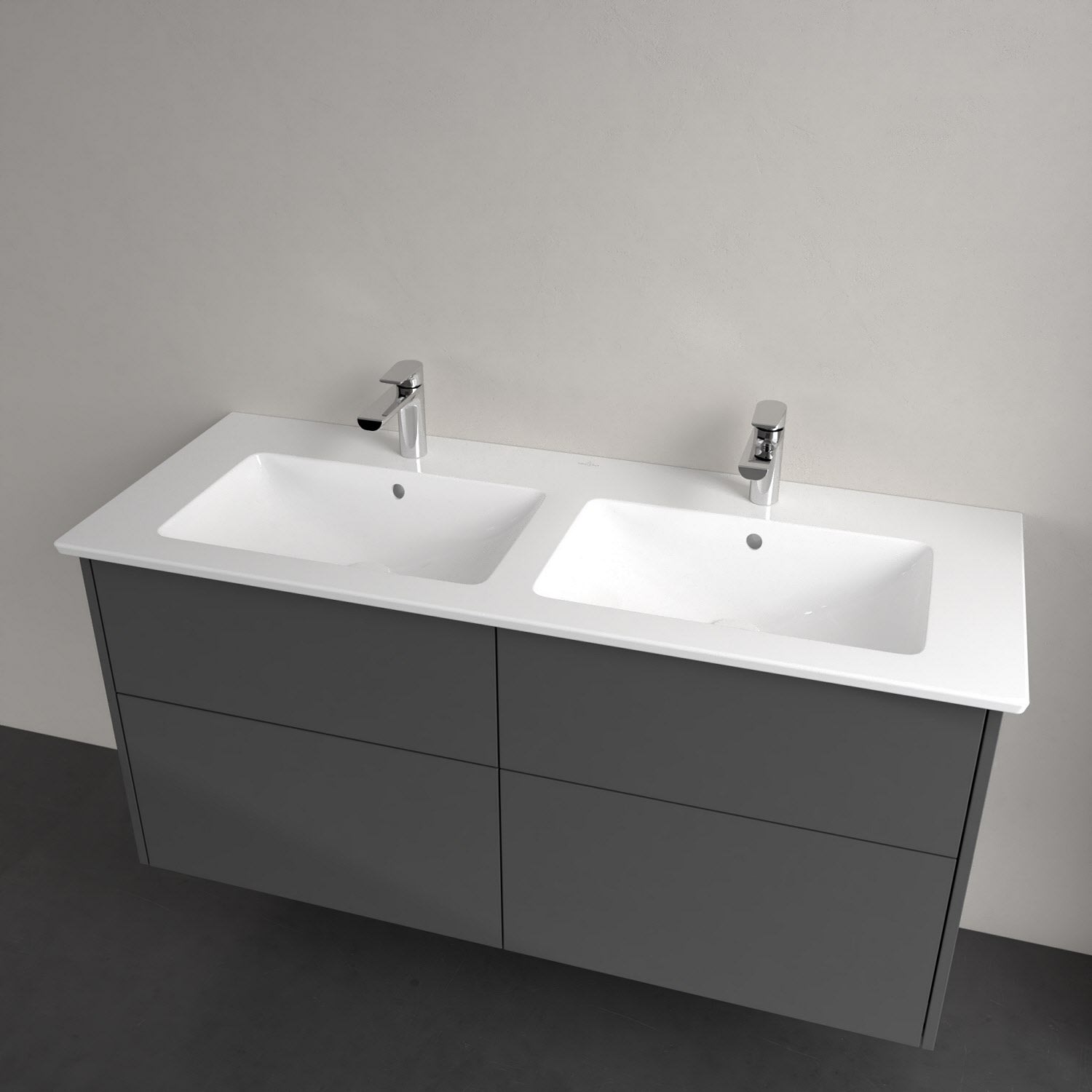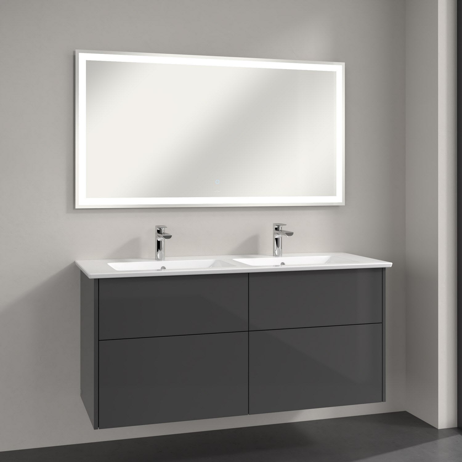 Villeroy & Boch Finero Waschtischunterschrank 130 cm mit Doppelwaschtisch und Spiegel, 4 Auszüge