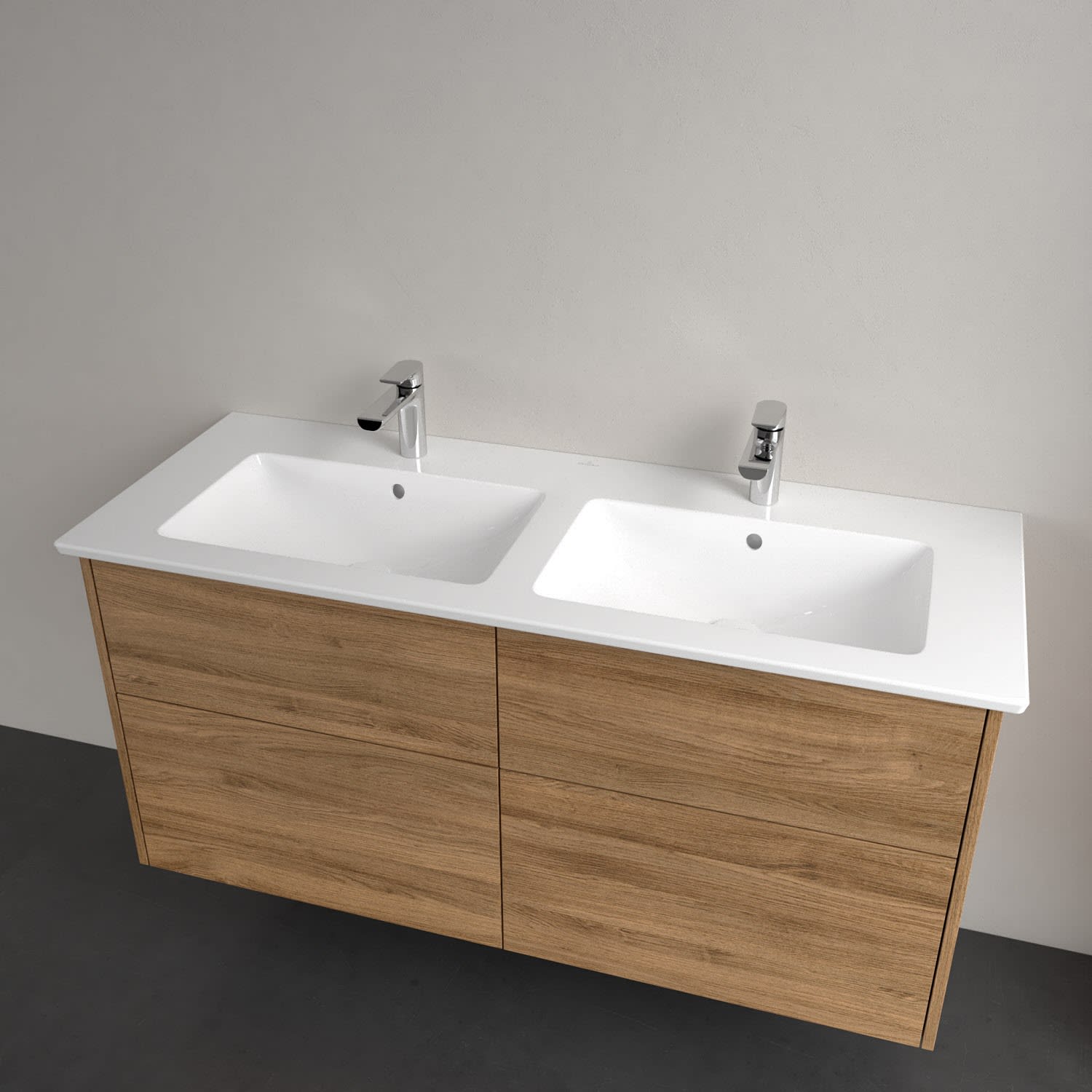 Villeroy & Boch Finero Waschtischunterschrank 130 cm mit Doppelwaschtisch und Spiegel, 4 Auszüge