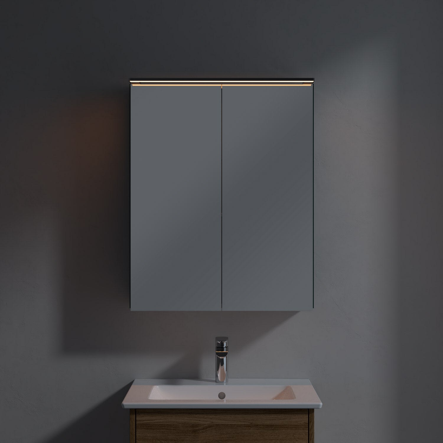 Villeroy & Boch Finero Waschtischunterschrank 60 cm mit Waschtisch und Spiegelschrank, 2 Auszüge