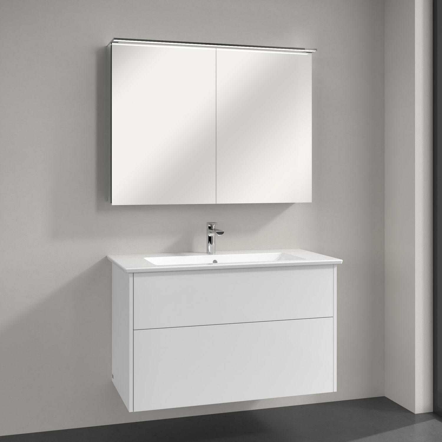 Villeroy & Boch Finero Waschtischunterschrank 100 cm mit Waschtisch und Spiegelschrank, 2 Auszüge