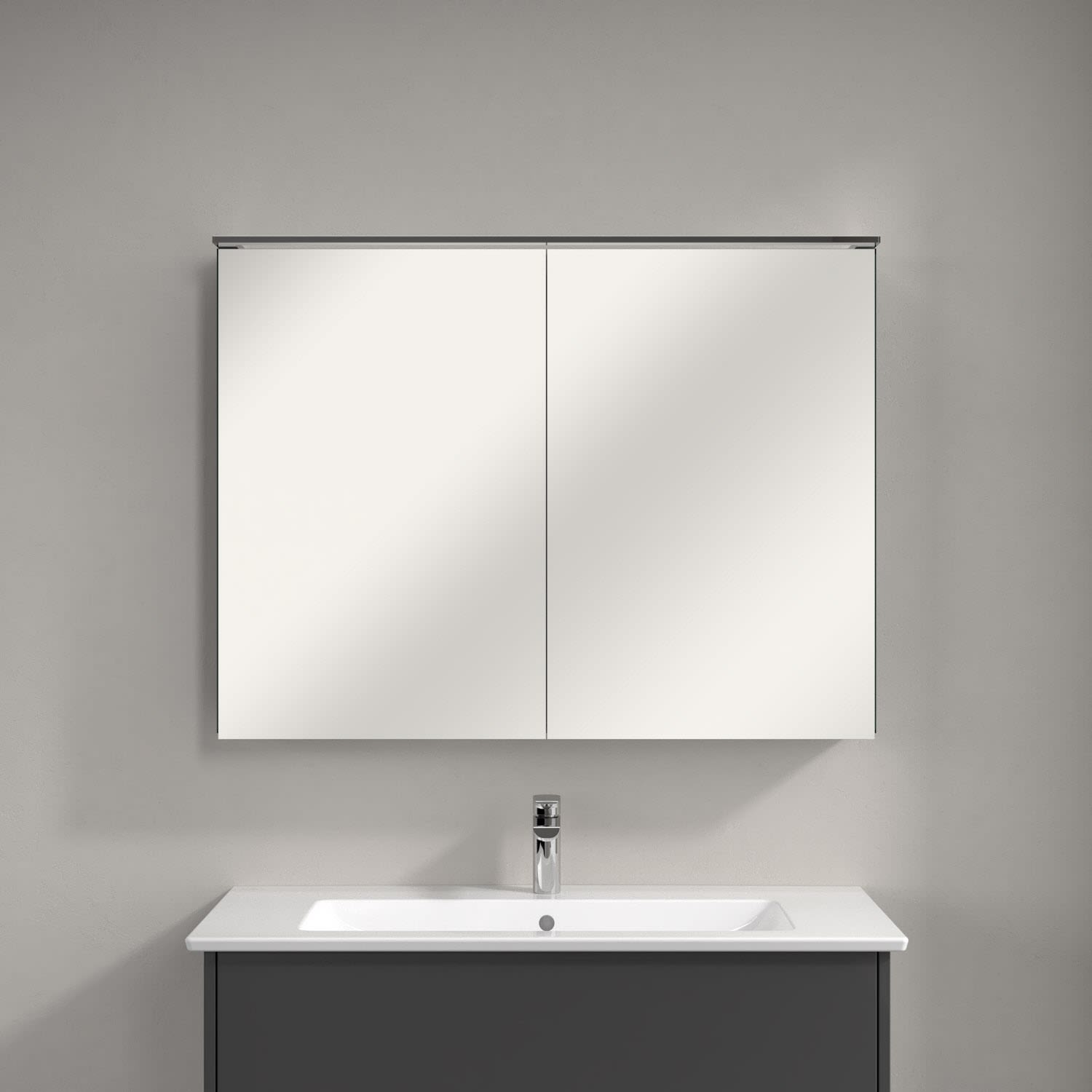 Villeroy & Boch Finero Waschtischunterschrank 100 cm mit Waschtisch und Spiegelschrank, 2 Auszüge