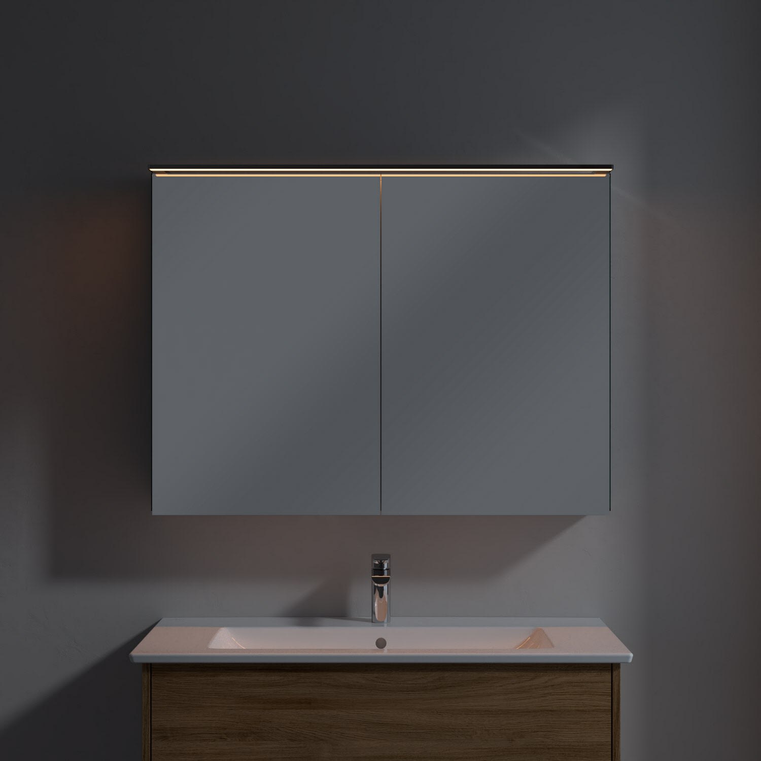 Villeroy & Boch Finero Waschtischunterschrank 100 cm mit Waschtisch und Spiegelschrank, 2 Auszüge
