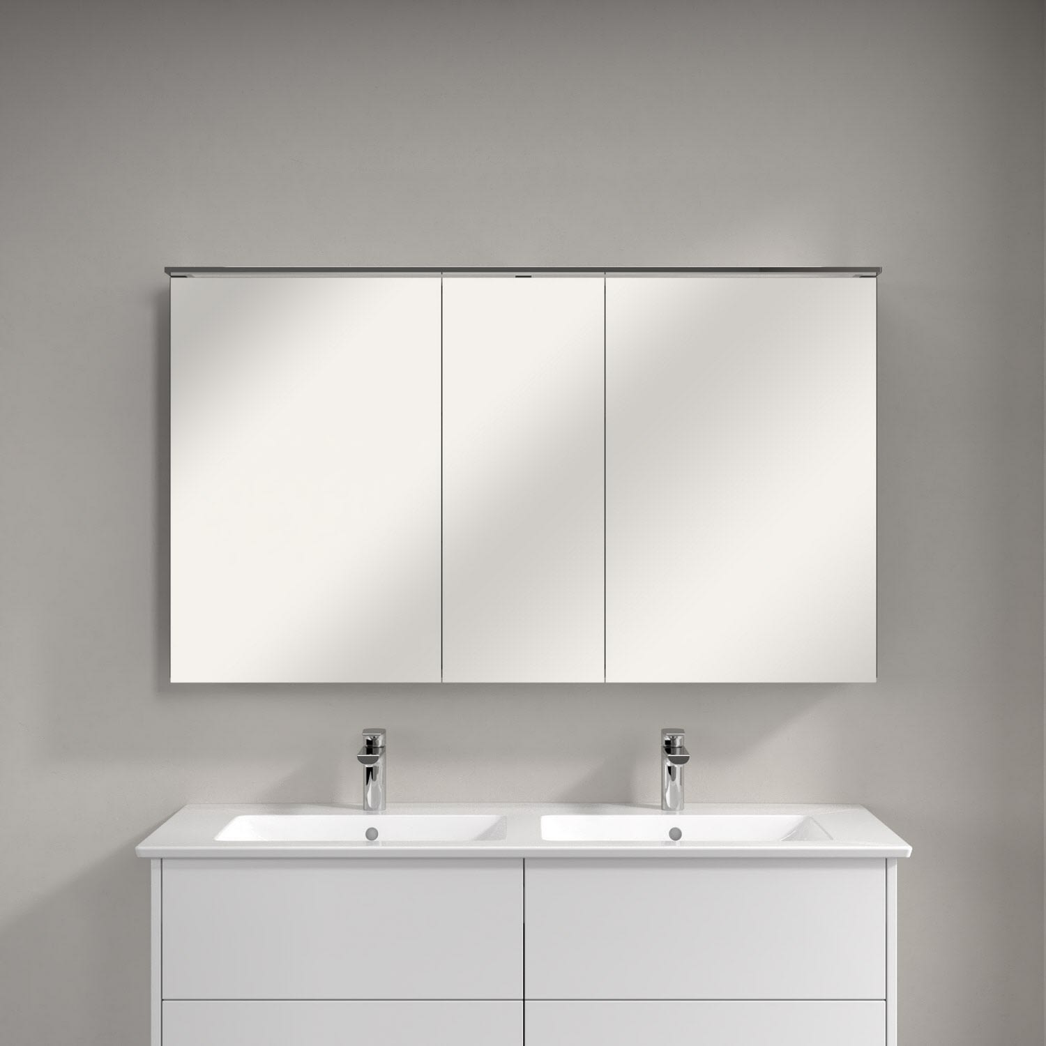 Villeroy & Boch Finero Waschtischunterschrank 130 cm mit Doppelwaschtisch und Spiegelschrank, 4 Auszüge