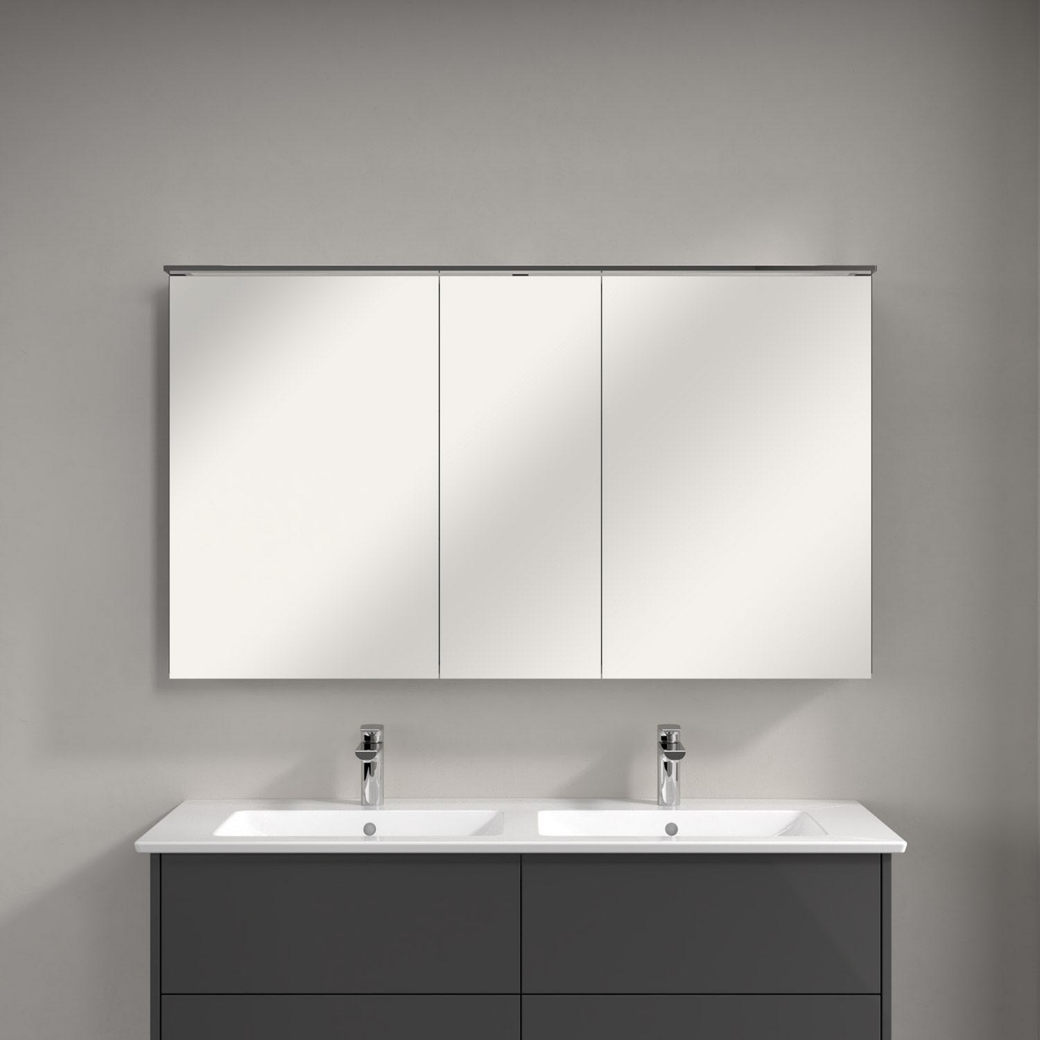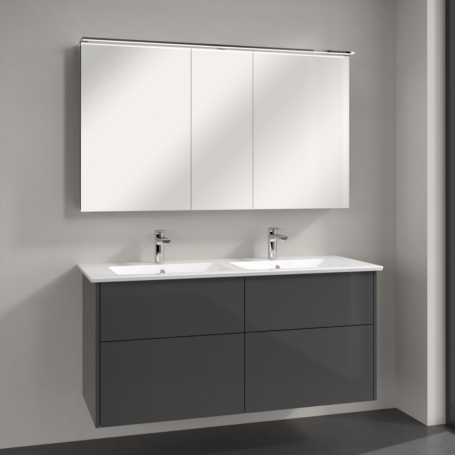 Villeroy & Boch Finero Waschtischunterschrank 130 cm mit Doppelwaschtisch und Spiegelschrank, 4 Auszüge
