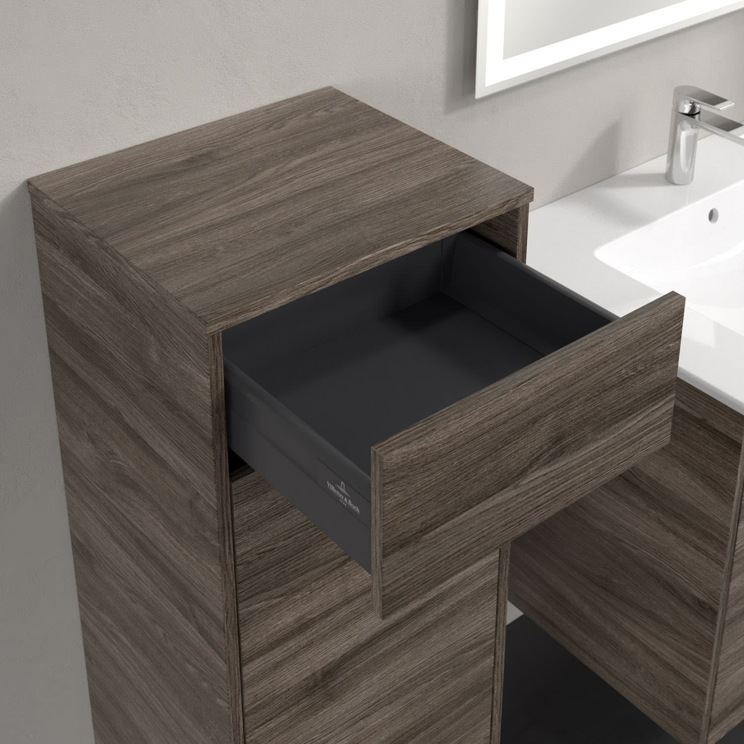 Villeroy & Boch Finero Seitenschrank 40,4 x 86,6 cm mit 1 Schublade und 1 Tür, Anschlag links