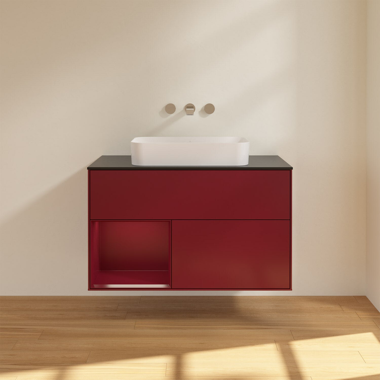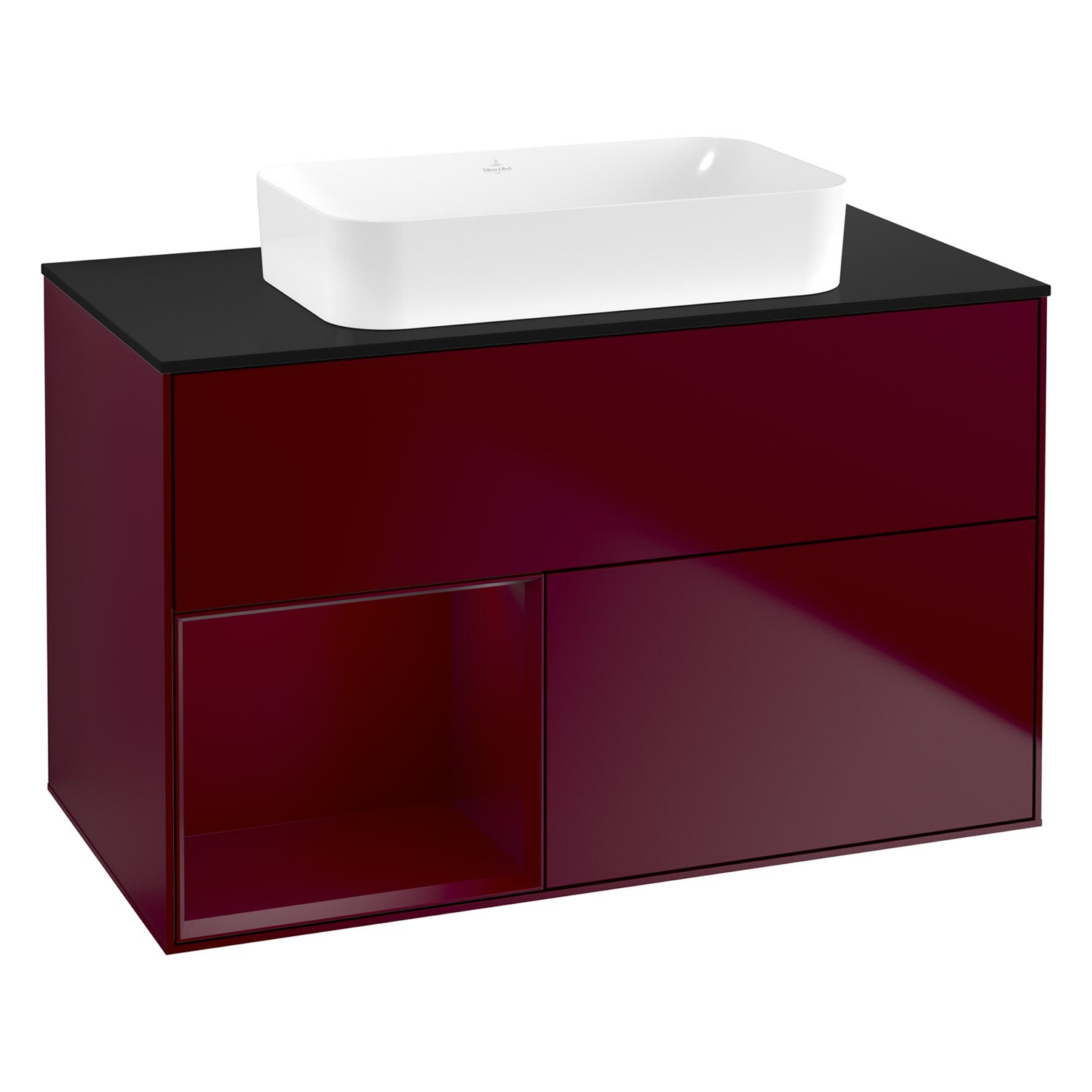 Villeroy & Boch Finion Waschtischunterschrank 100 cm mit Regalelement links und Abdeckplatte, mit Wandbeleuchtung