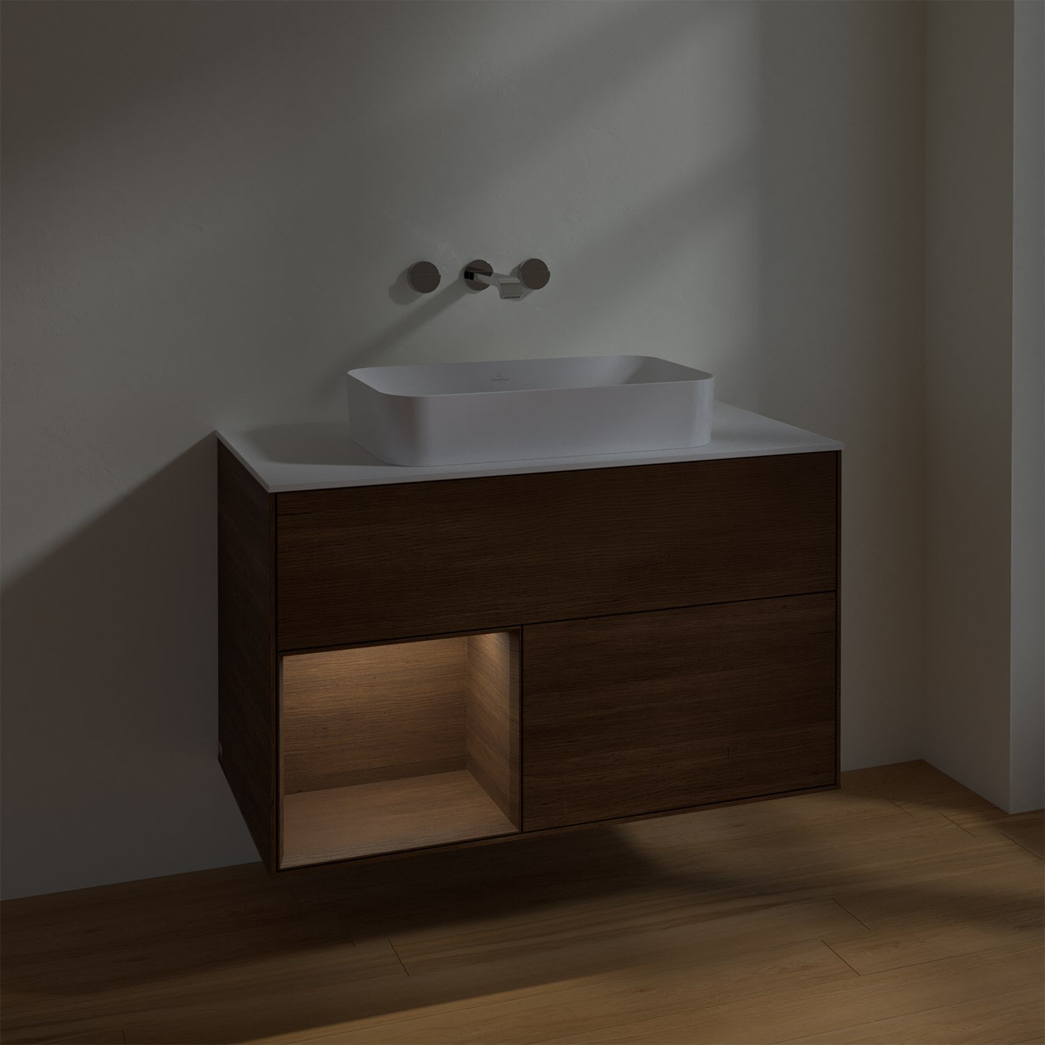 Villeroy & Boch Finion Waschtischunterschrank 100 cm mit Regalelement links und Abdeckplatte