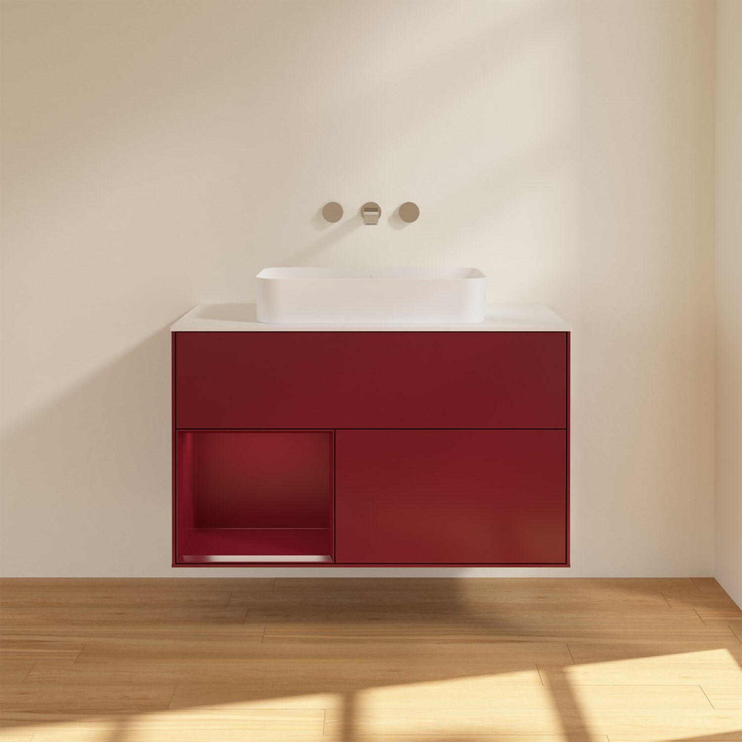 Villeroy & Boch Finion Waschtischunterschrank 100 cm mit Regalelement links und Abdeckplatte