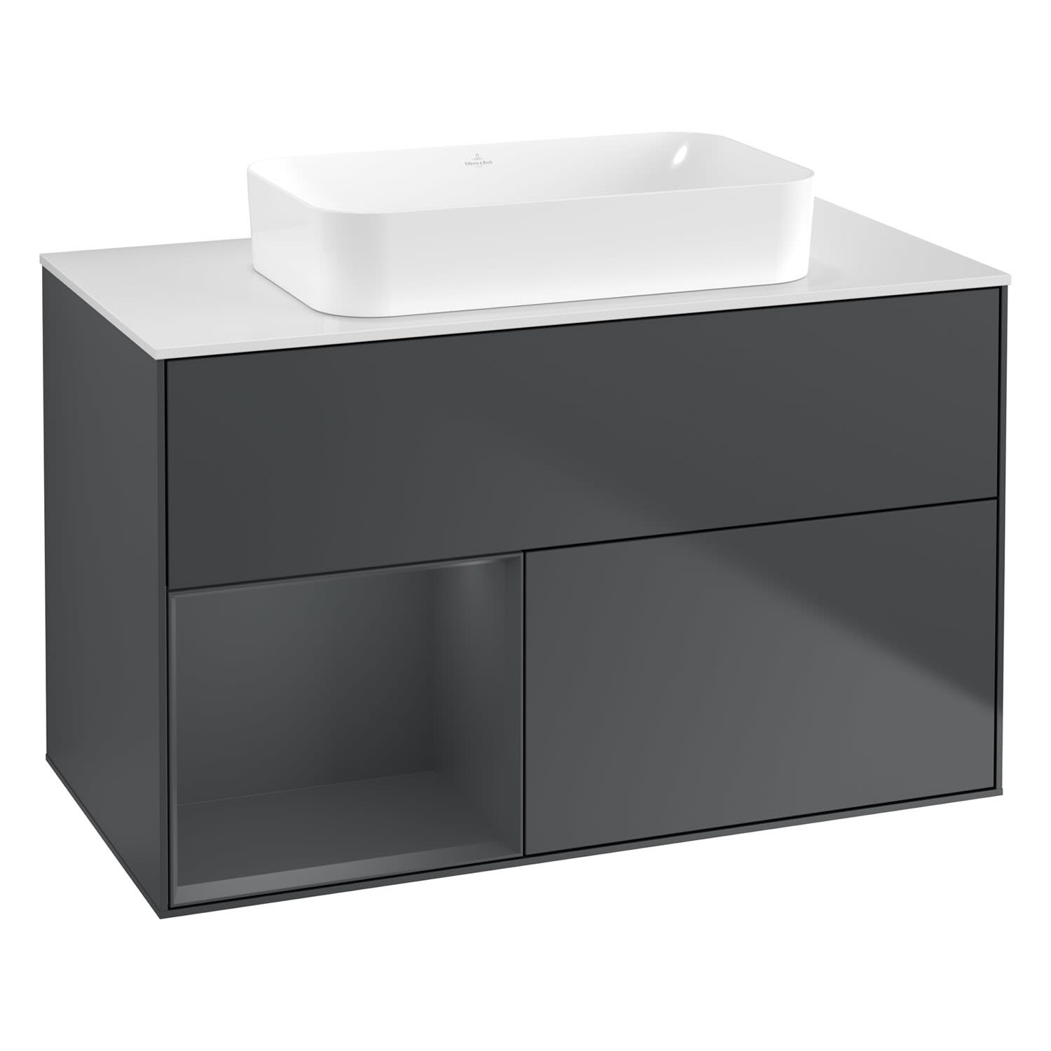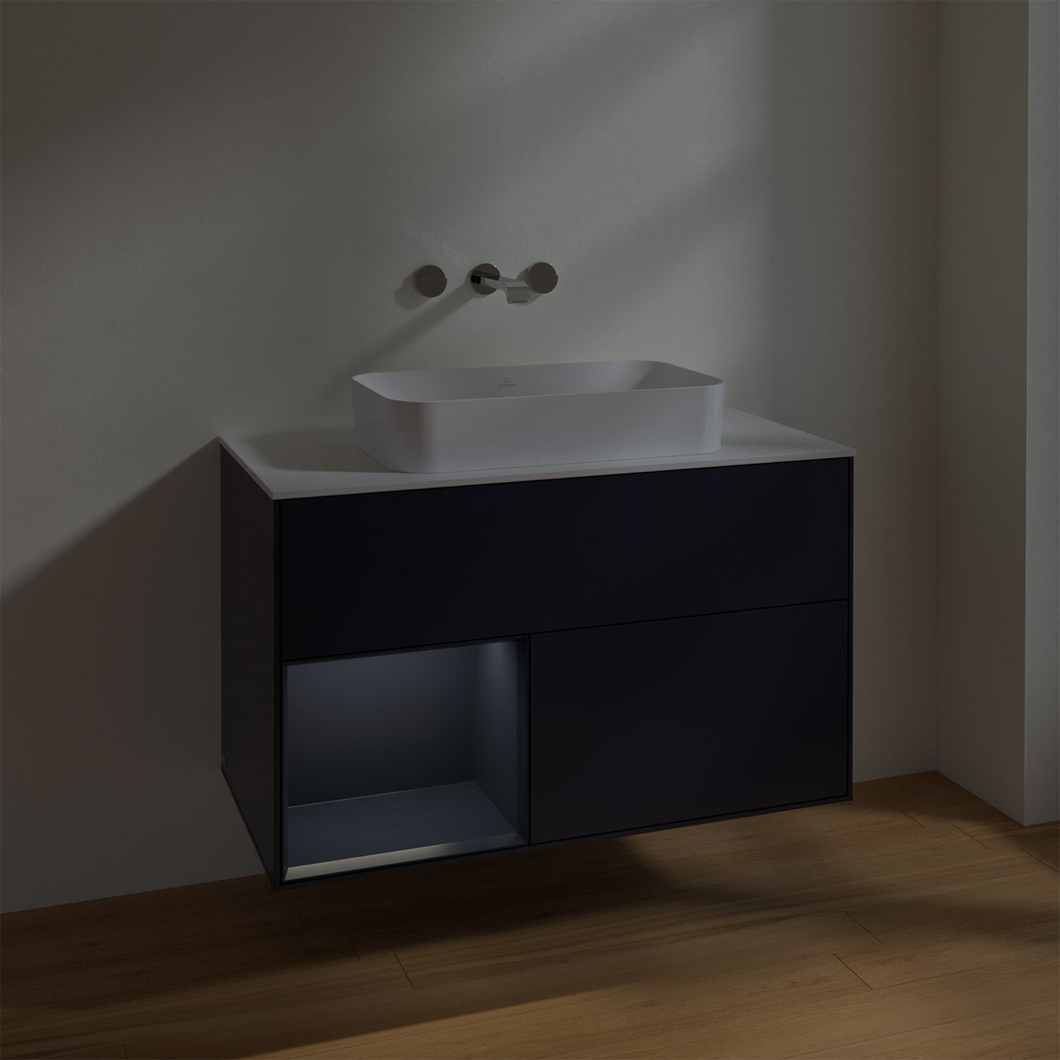 Villeroy & Boch Finion Waschtischunterschrank 100 cm mit Regalelement links und Abdeckplatte