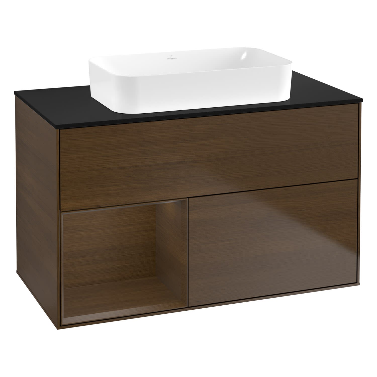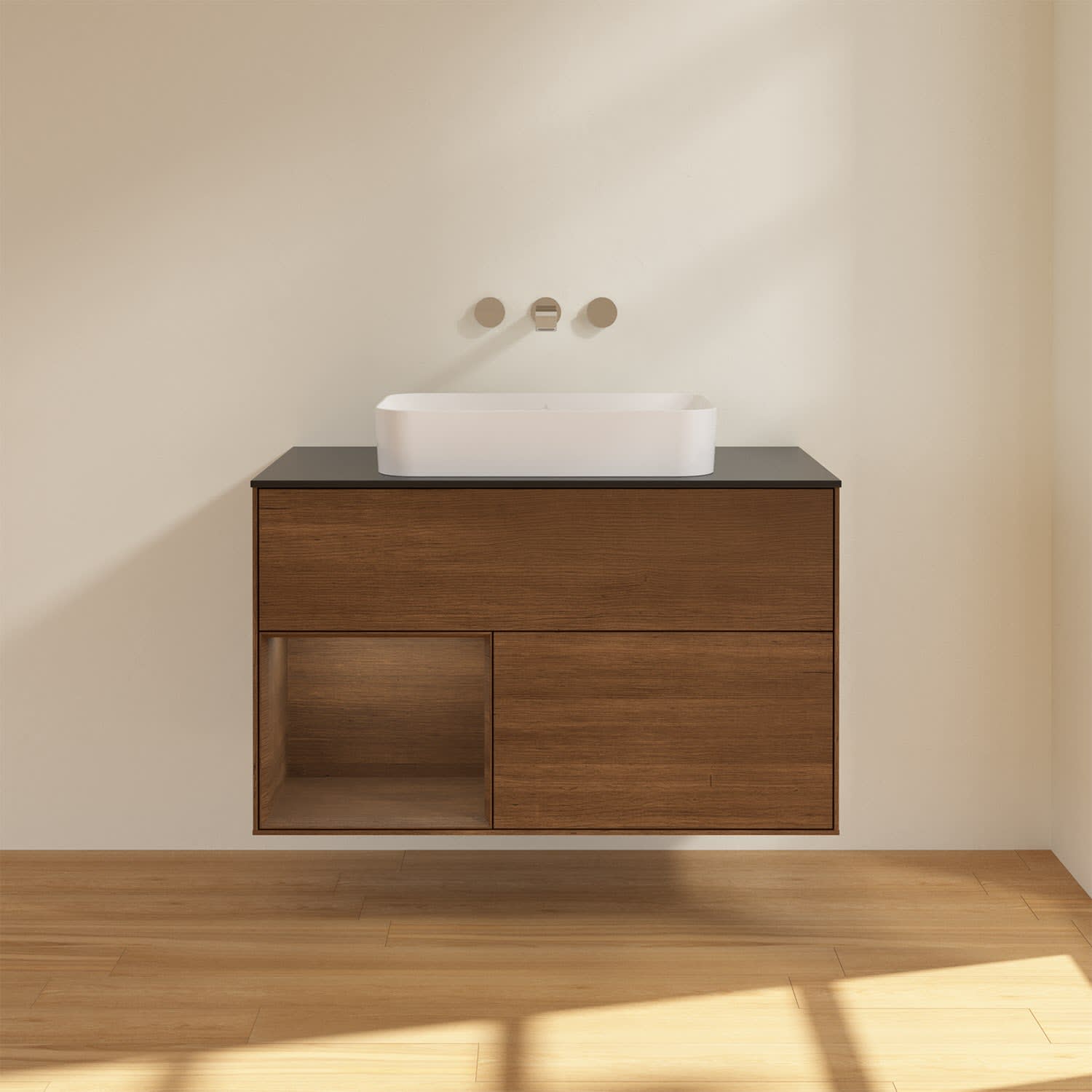 Villeroy & Boch Finion Waschtischunterschrank 100 cm mit Regalelement links und Abdeckplatte