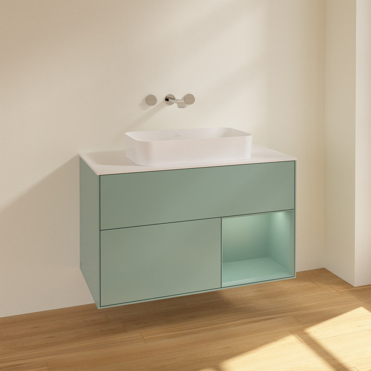 Villeroy & Boch Finion Waschtischunterschrank 100 cm mit Regalelement rechts und Abdeckplatte