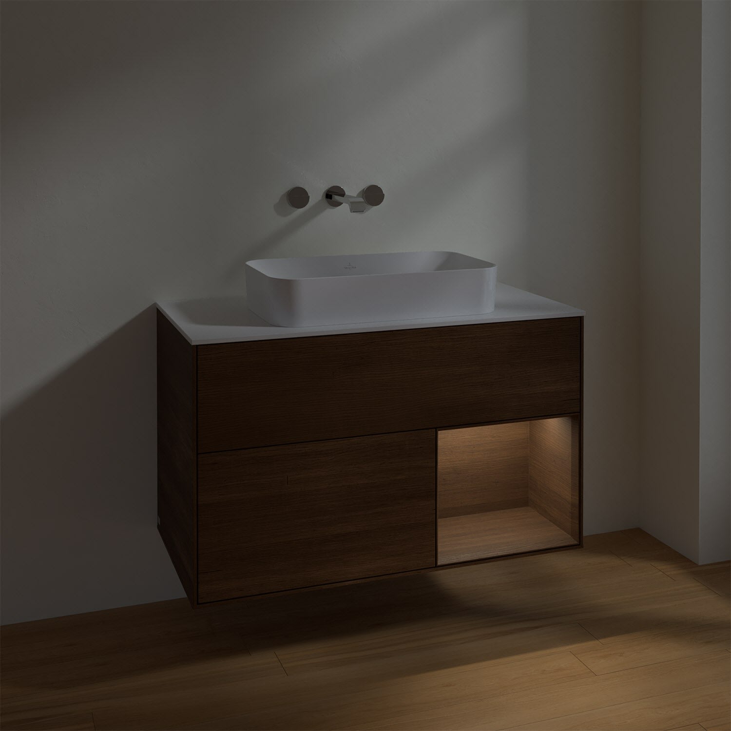 Villeroy & Boch Finion Waschtischunterschrank 100 cm mit Regalelement rechts und Abdeckplatte