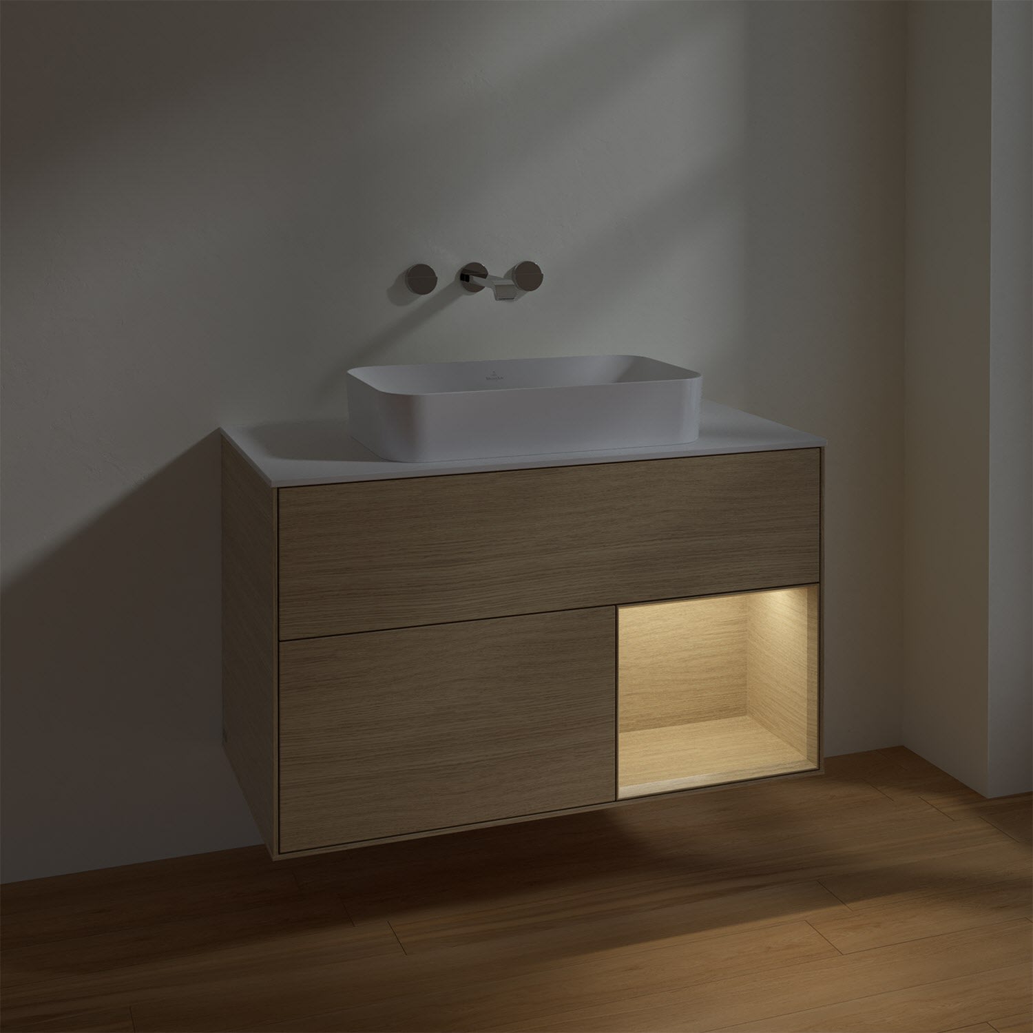 Villeroy & Boch Finion Waschtischunterschrank 100 cm mit Regalelement rechts und Abdeckplatte