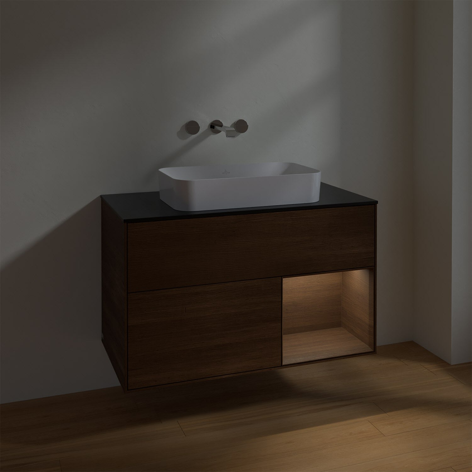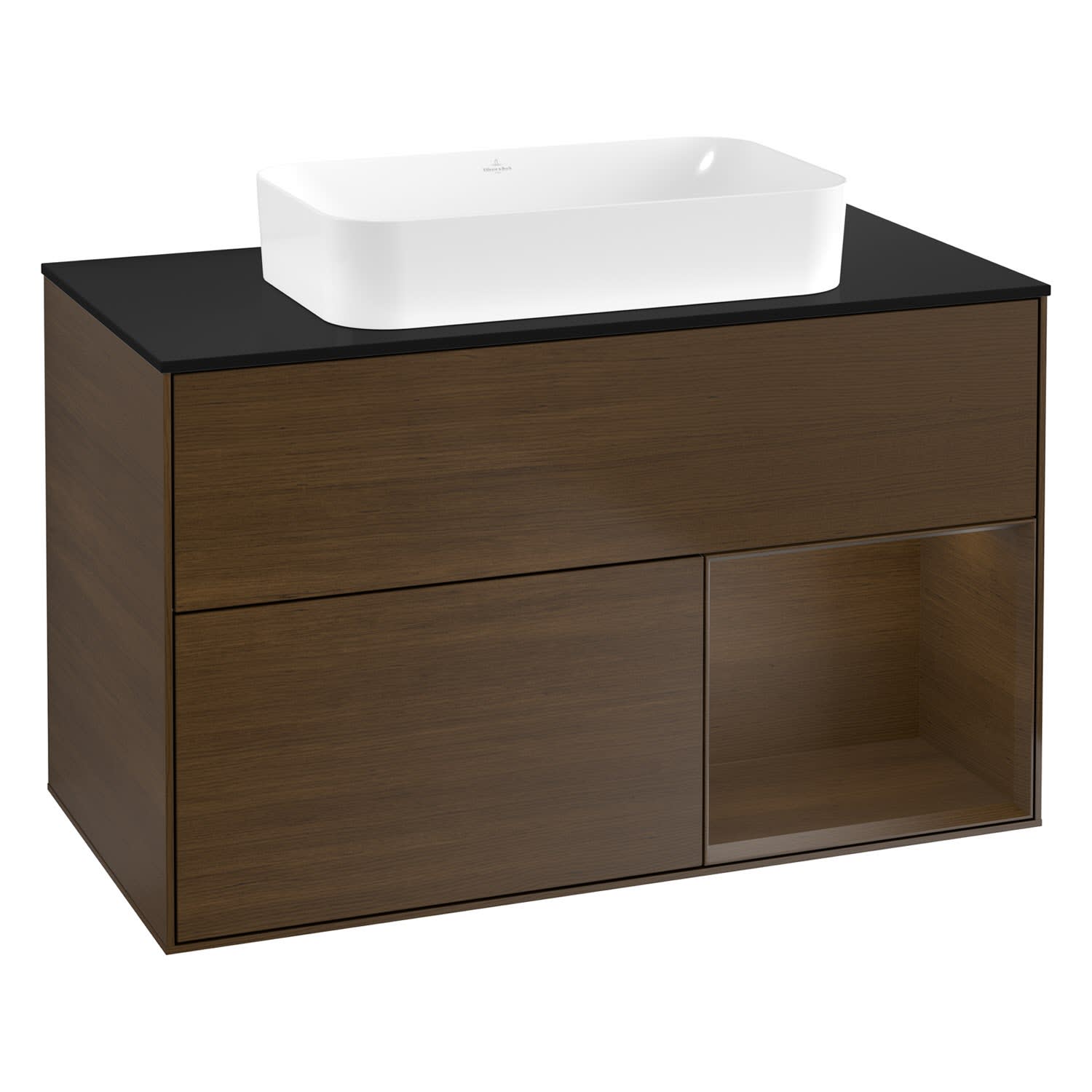 Villeroy & Boch Finion Waschtischunterschrank 100 cm mit Regalelement rechts und Abdeckplatte