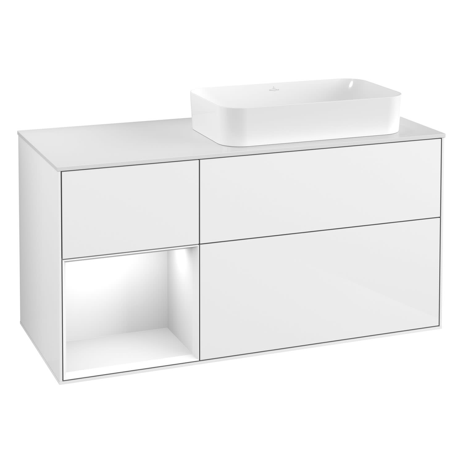 Villeroy & Boch Finion Waschtischunterschrank 120 cm mit Regalelement links und Abdeckplatte
