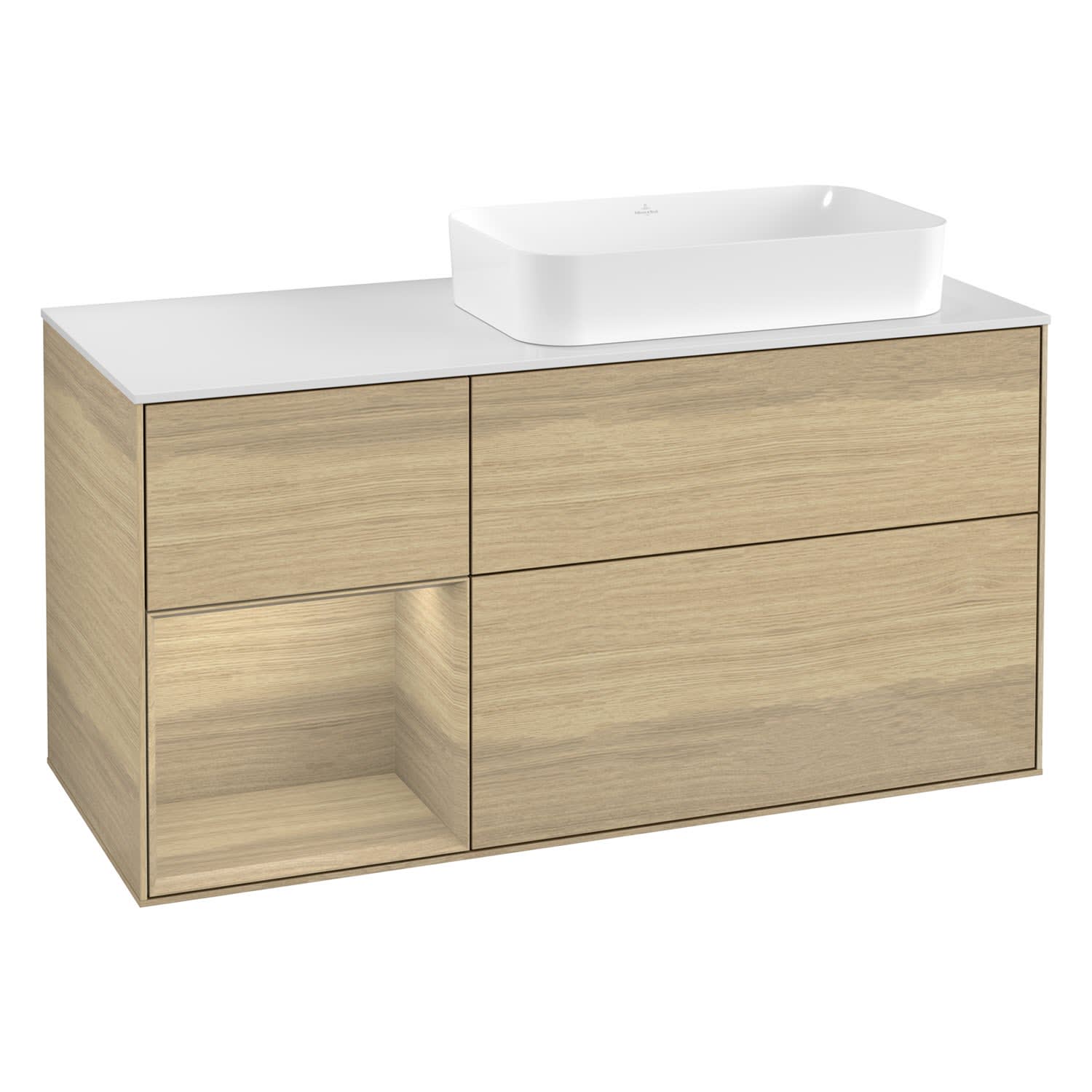 Villeroy & Boch Finion Waschtischunterschrank 120 cm mit Regalelement links und Abdeckplatte