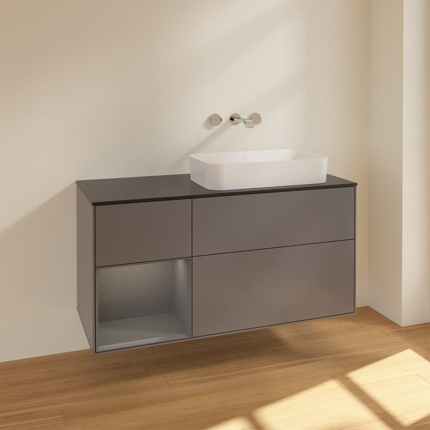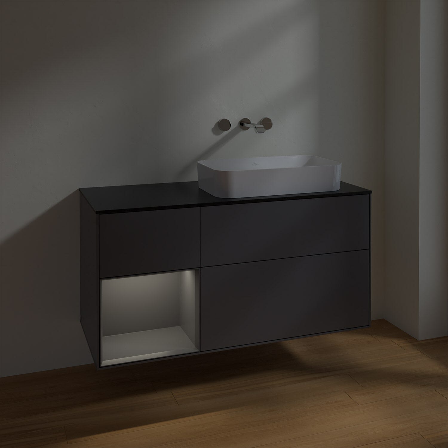 Villeroy & Boch Finion Waschtischunterschrank 120 cm mit Regalelement links und Abdeckplatte