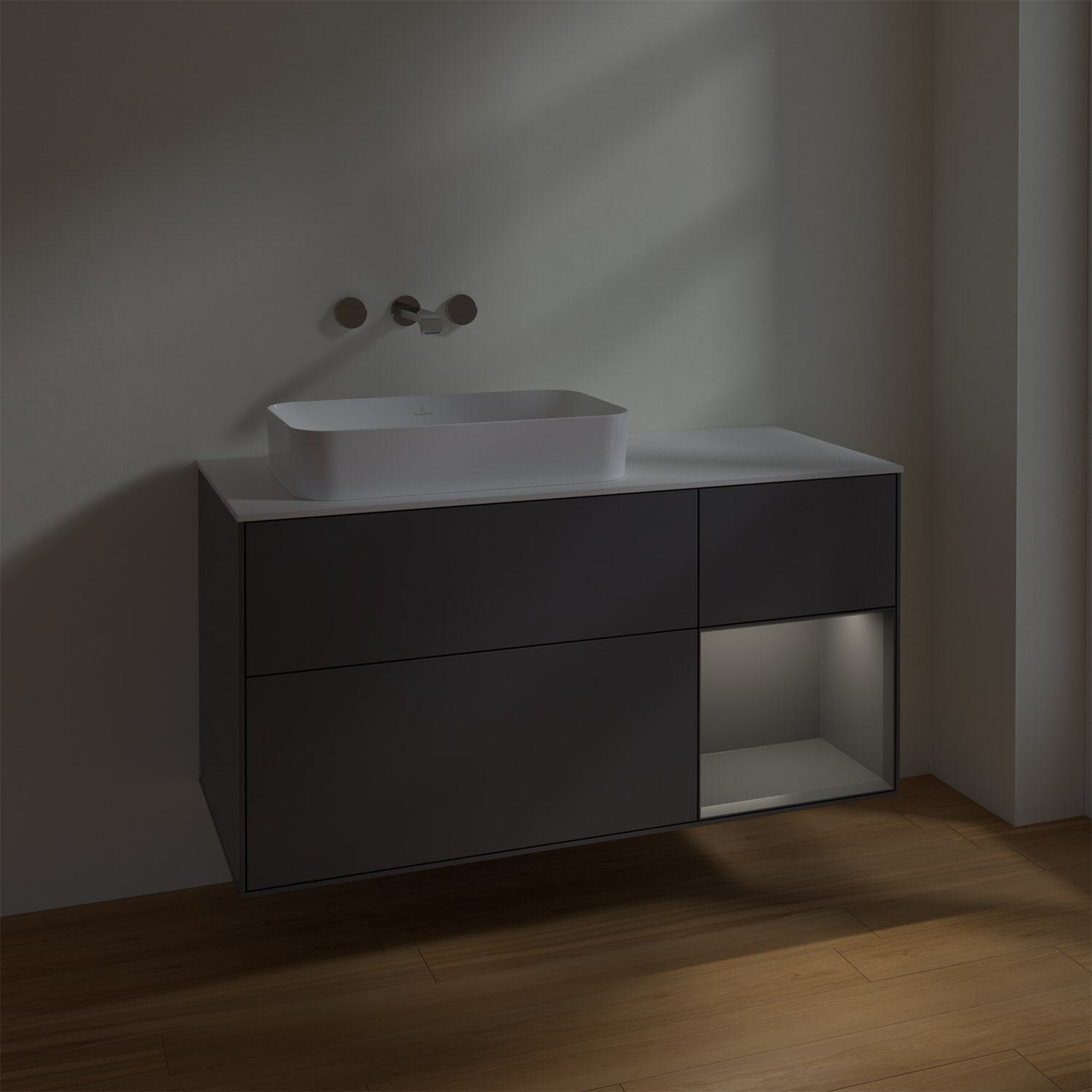 Villeroy & Boch Finion Waschtischunterschrank 120 cm mit Regalelement rechts und Abdeckplatte