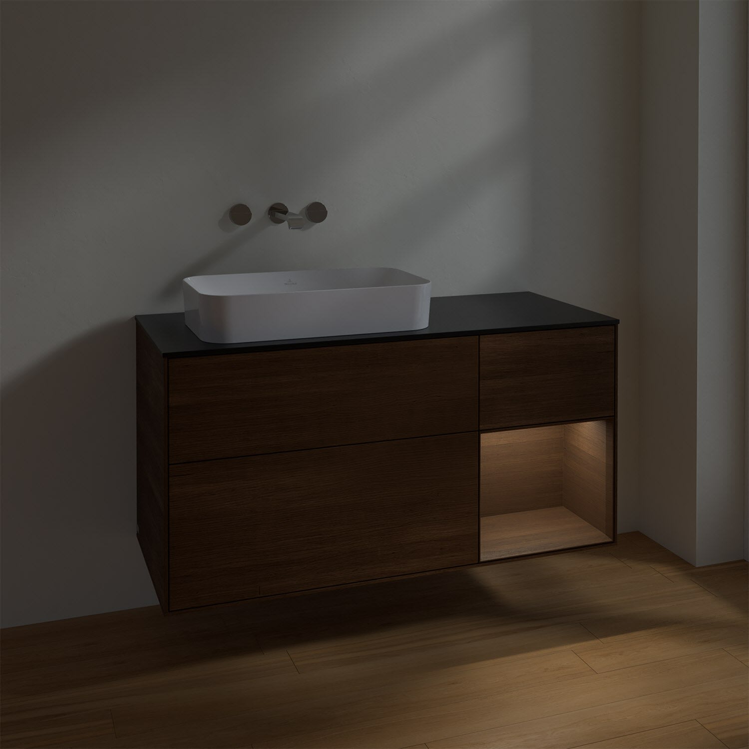 Villeroy & Boch Finion Waschtischunterschrank 120 cm mit Regalelement rechts und Abdeckplatte