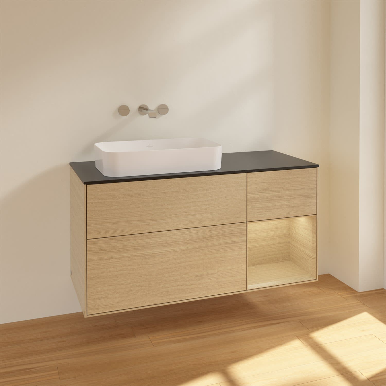 Villeroy & Boch Finion Waschtischunterschrank 120 cm mit Regalelement rechts und Abdeckplatte
