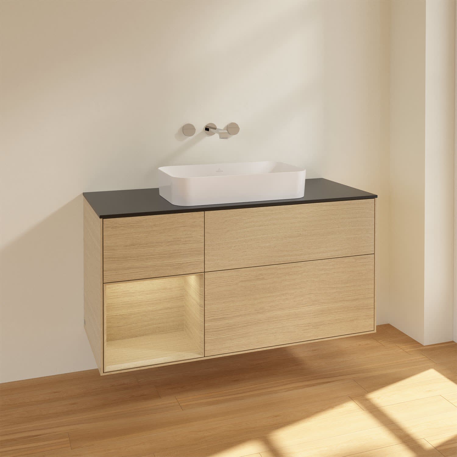 Villeroy & Boch Finion Waschtischunterschrank 120 cm mit Regalelement links und Abdeckplatte