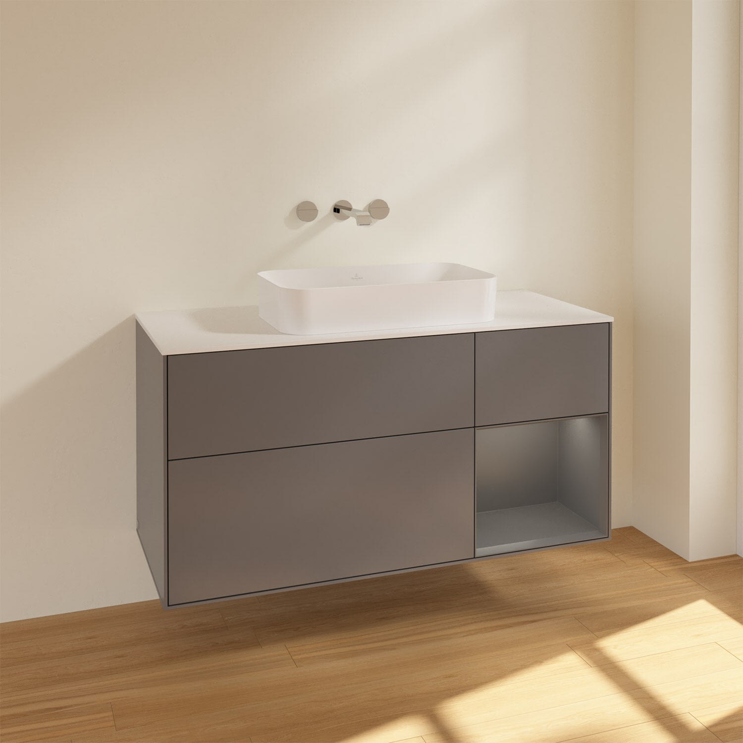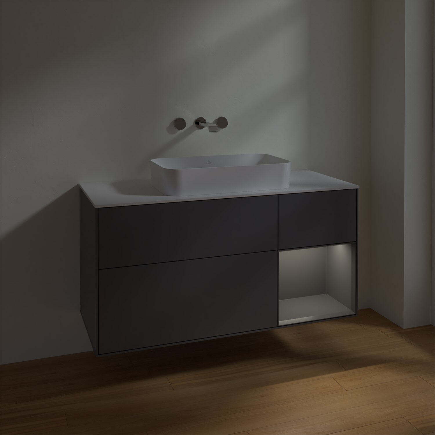 Villeroy & Boch Finion Waschtischunterschrank 120 cm mit Regalelement rechts und Abdeckplatte