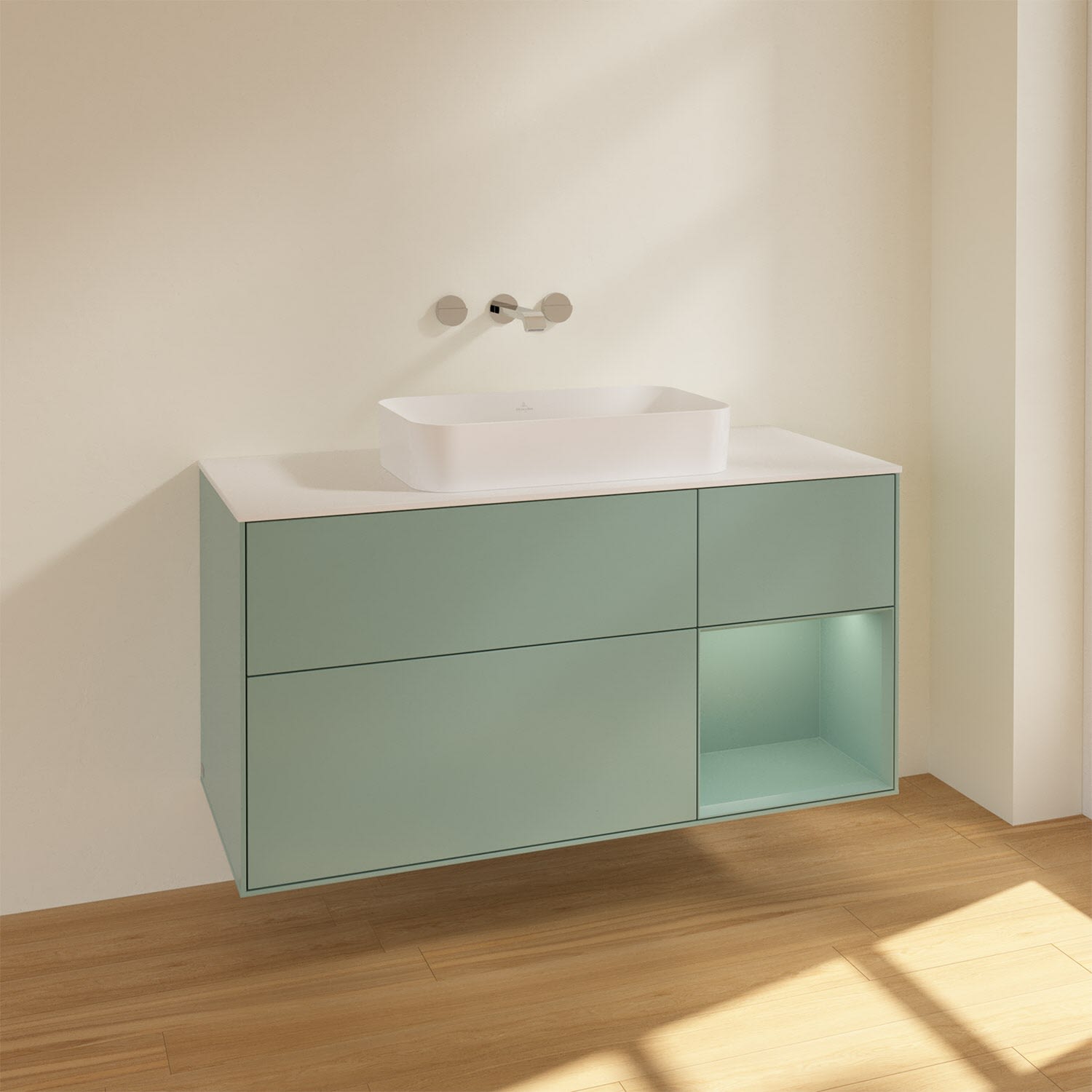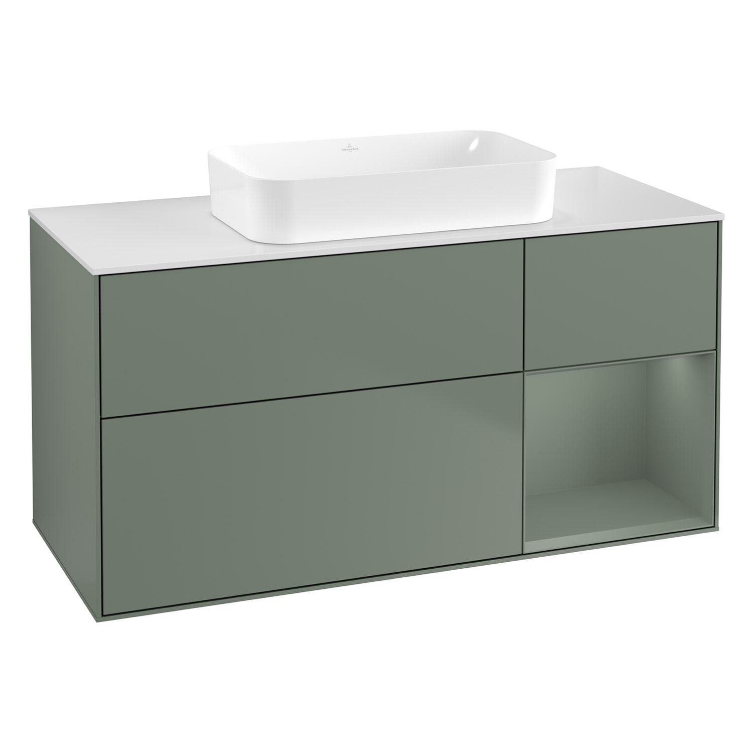 Villeroy & Boch Finion Waschtischunterschrank 120 cm mit Regalelement rechts und Abdeckplatte