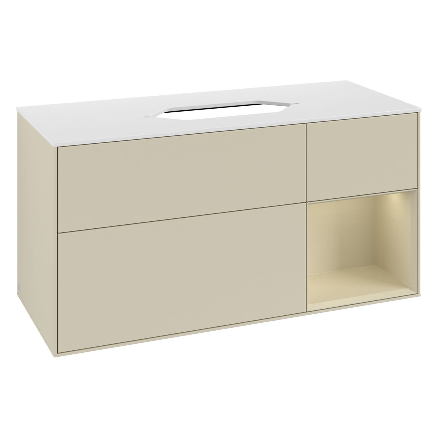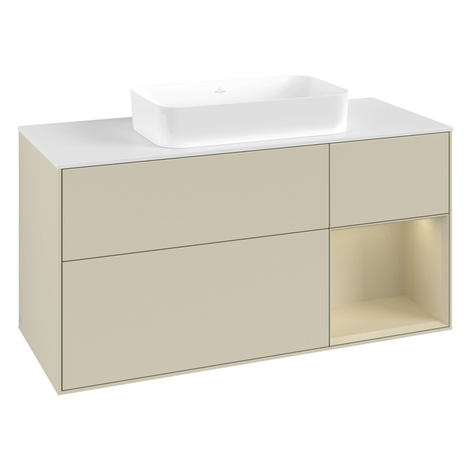 Villeroy & Boch Finion Waschtischunterschrank 120 cm mit Regalelement rechts und Abdeckplatte
