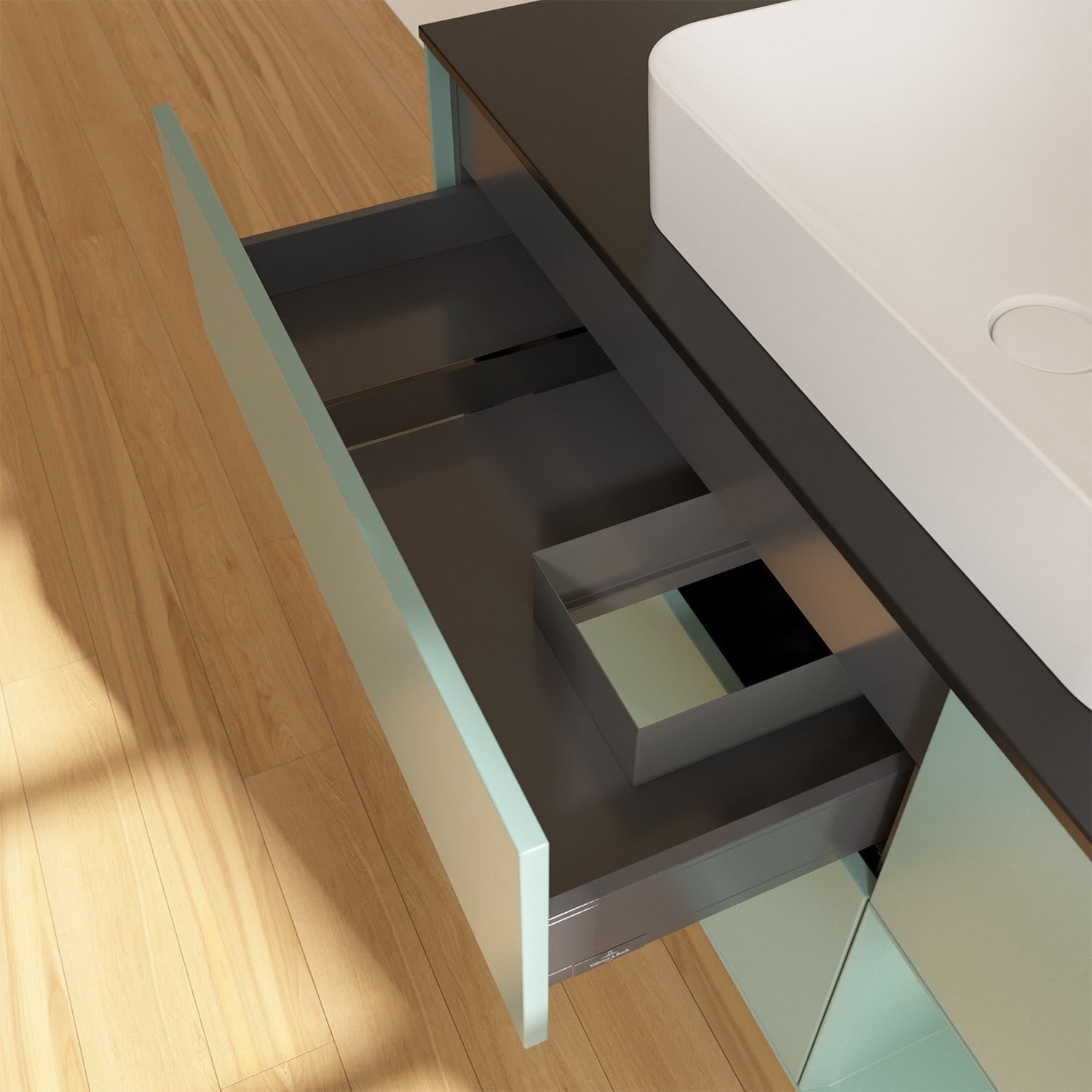 - kein Umfallen oder Verrutschen von Pflegeprodukten in den Schubladen dank rutschhemmendem Boden