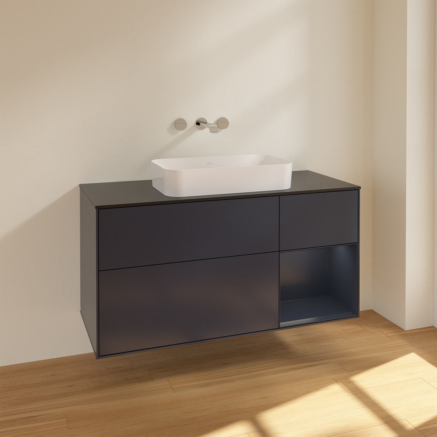 Villeroy & Boch Finion Waschtischunterschrank 120 cm mit Regalelement rechts und Abdeckplatte