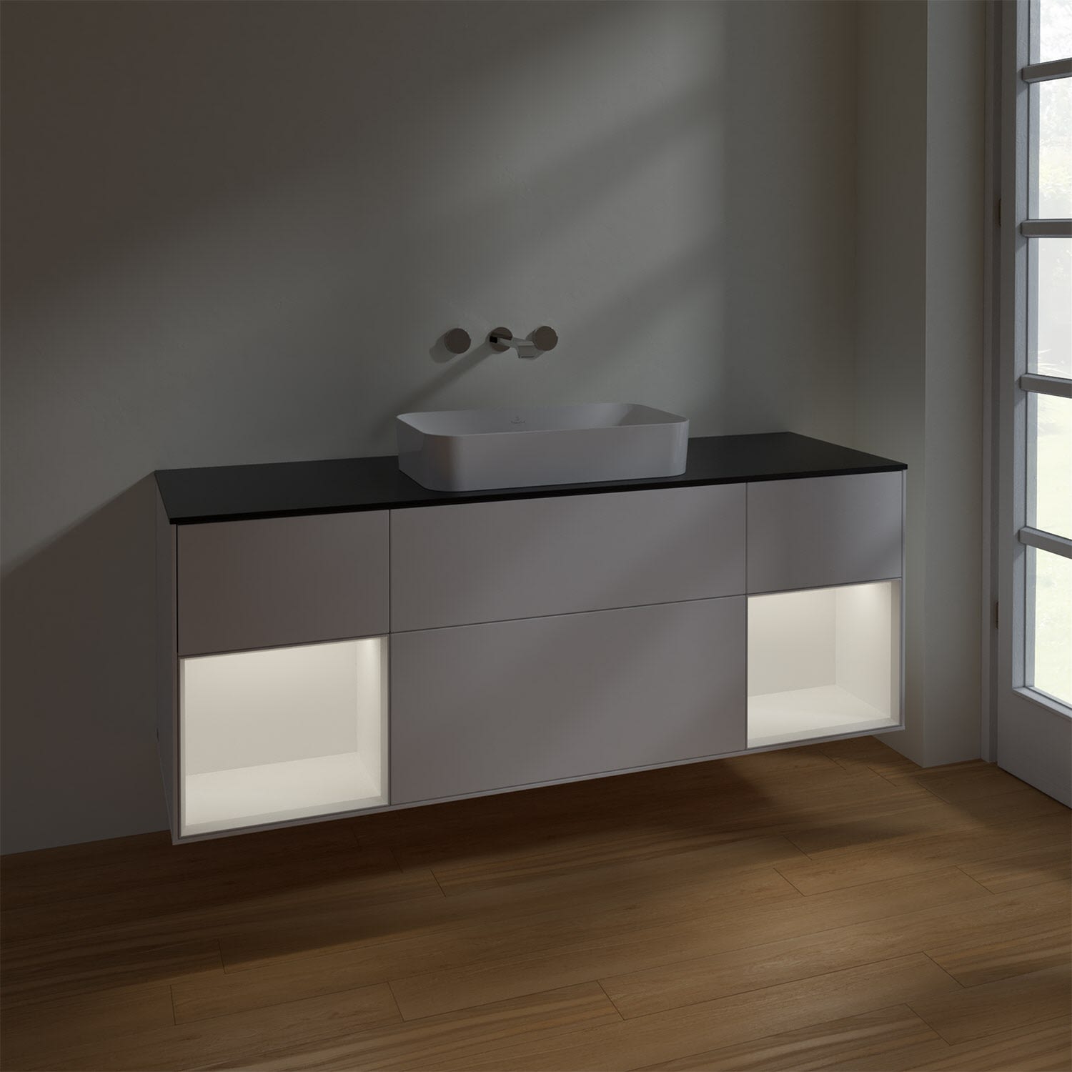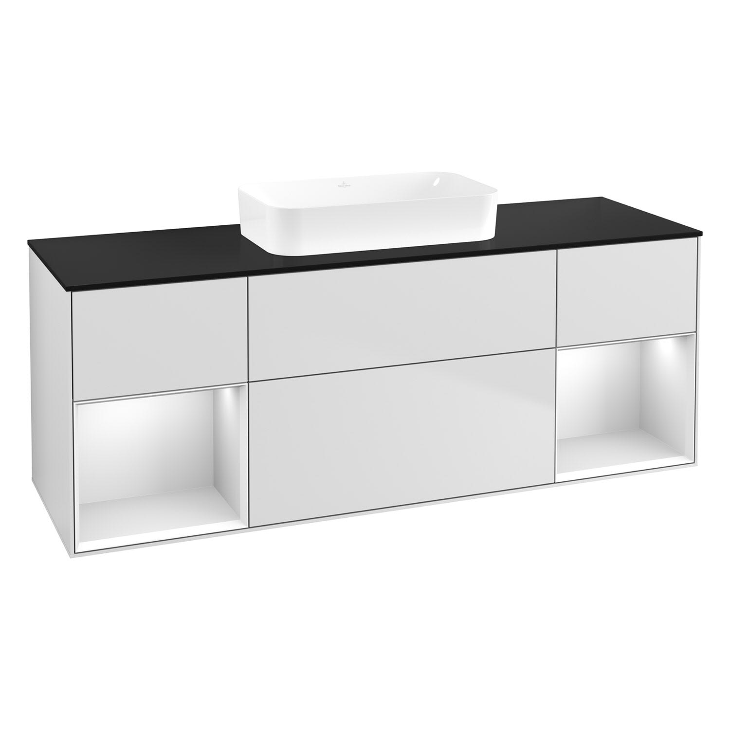 Villeroy & Boch Finion Waschtischunterschrank 160 cm mit Regalelement links und rechts und Abdeckplatte