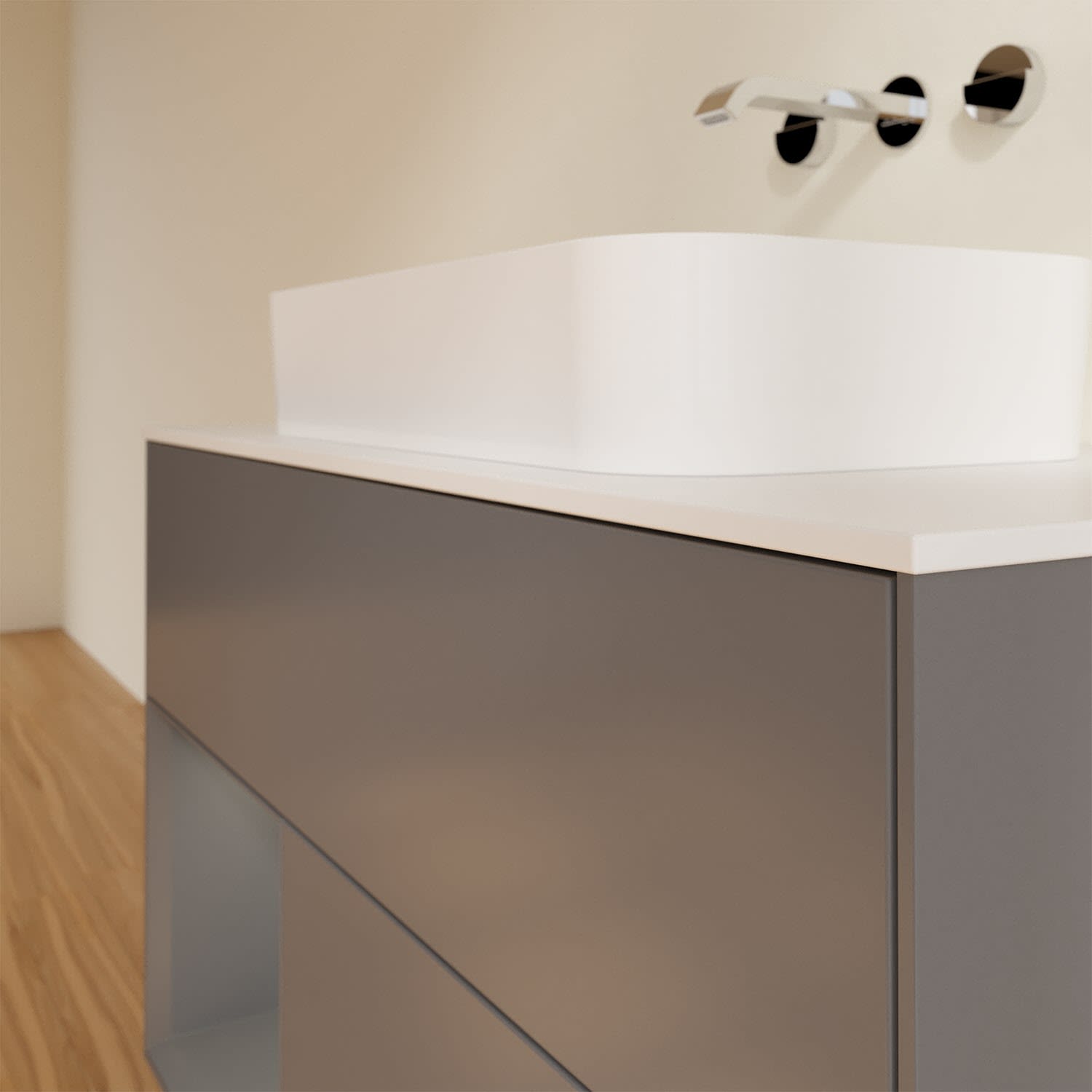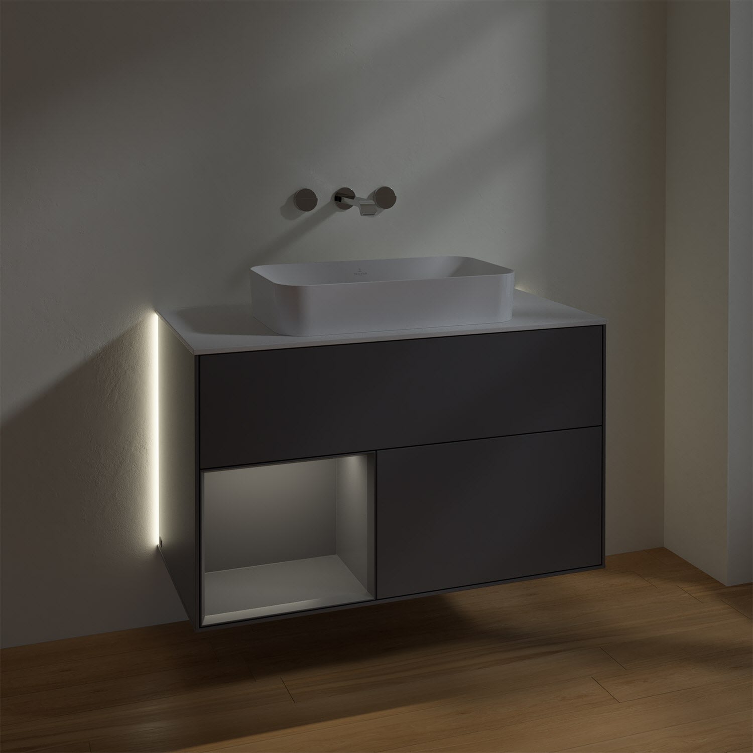 Villeroy & Boch Finion Waschtischunterschrank 100 cm mit Regalelement links und Abdeckplatte, mit Wandbeleuchtung