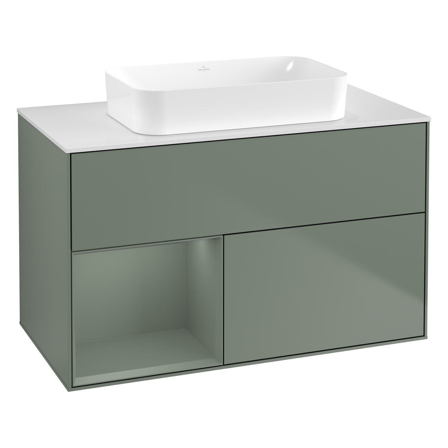 Villeroy & Boch Finion Waschtischunterschrank 100 cm mit Regalelement links und Abdeckplatte, mit Wandbeleuchtung