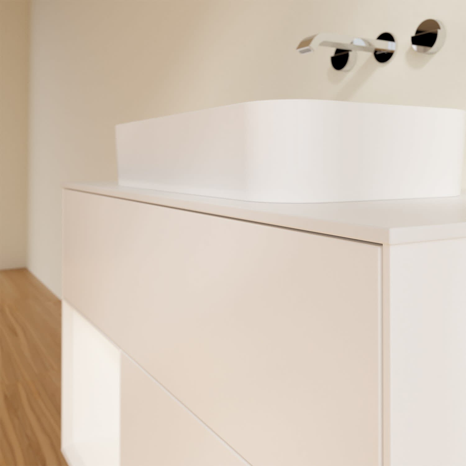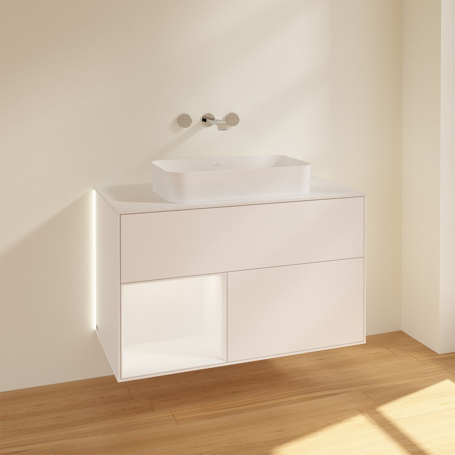 Villeroy & Boch Finion Waschtischunterschrank 100 cm mit Regalelement links und Abdeckplatte, mit Wandbeleuchtung