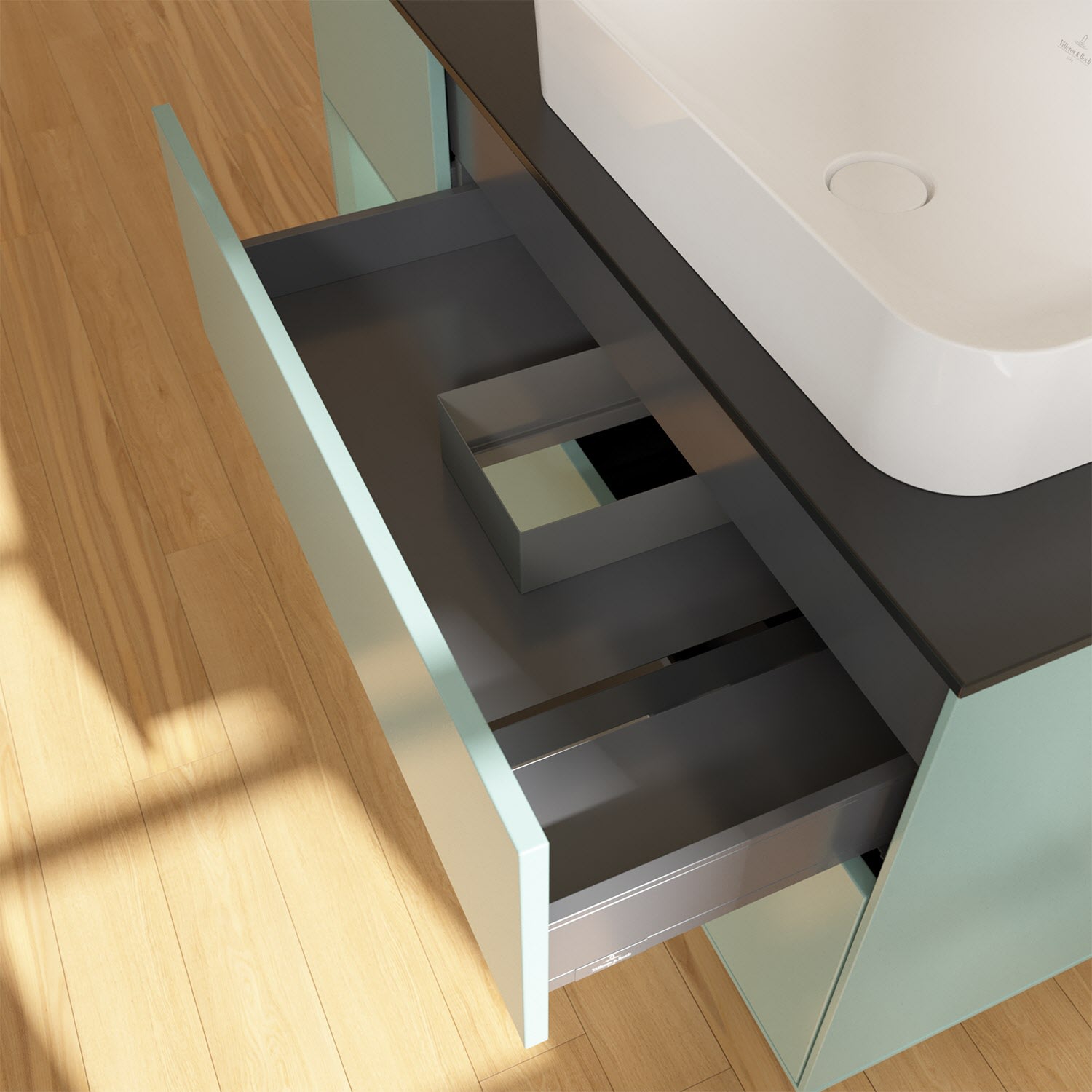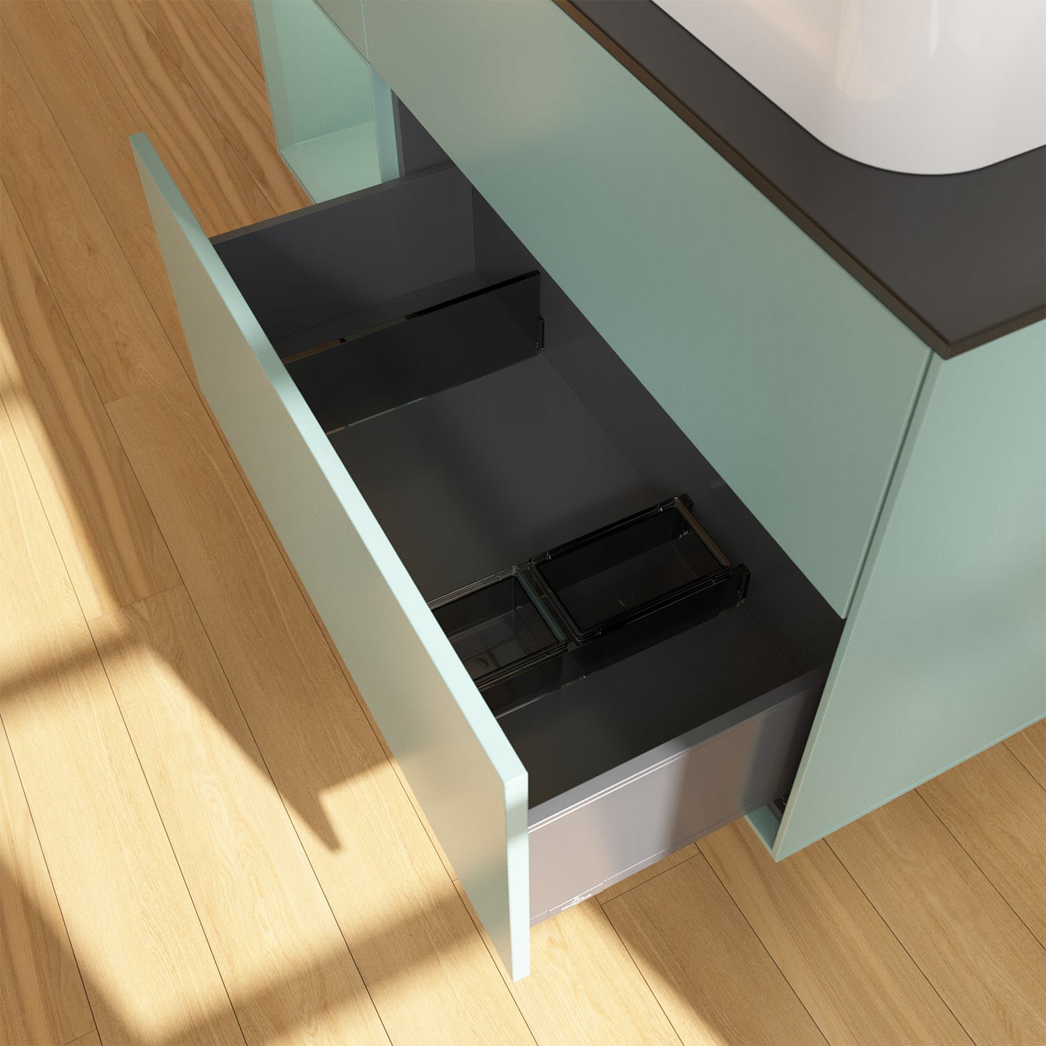 - kein Umfallen oder Verrutschen von Pflegeprodukten in den Schubladen dank rutschhemmendem Boden
