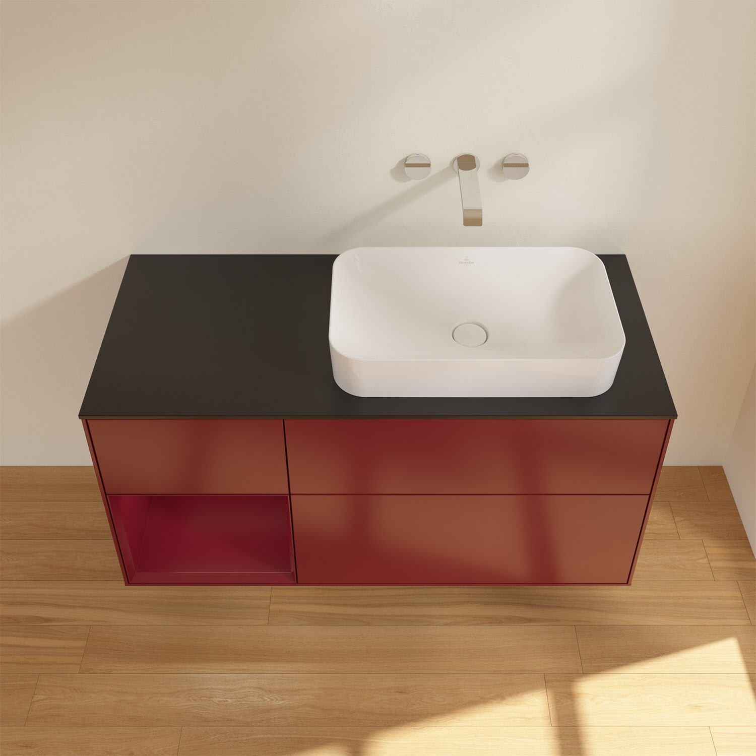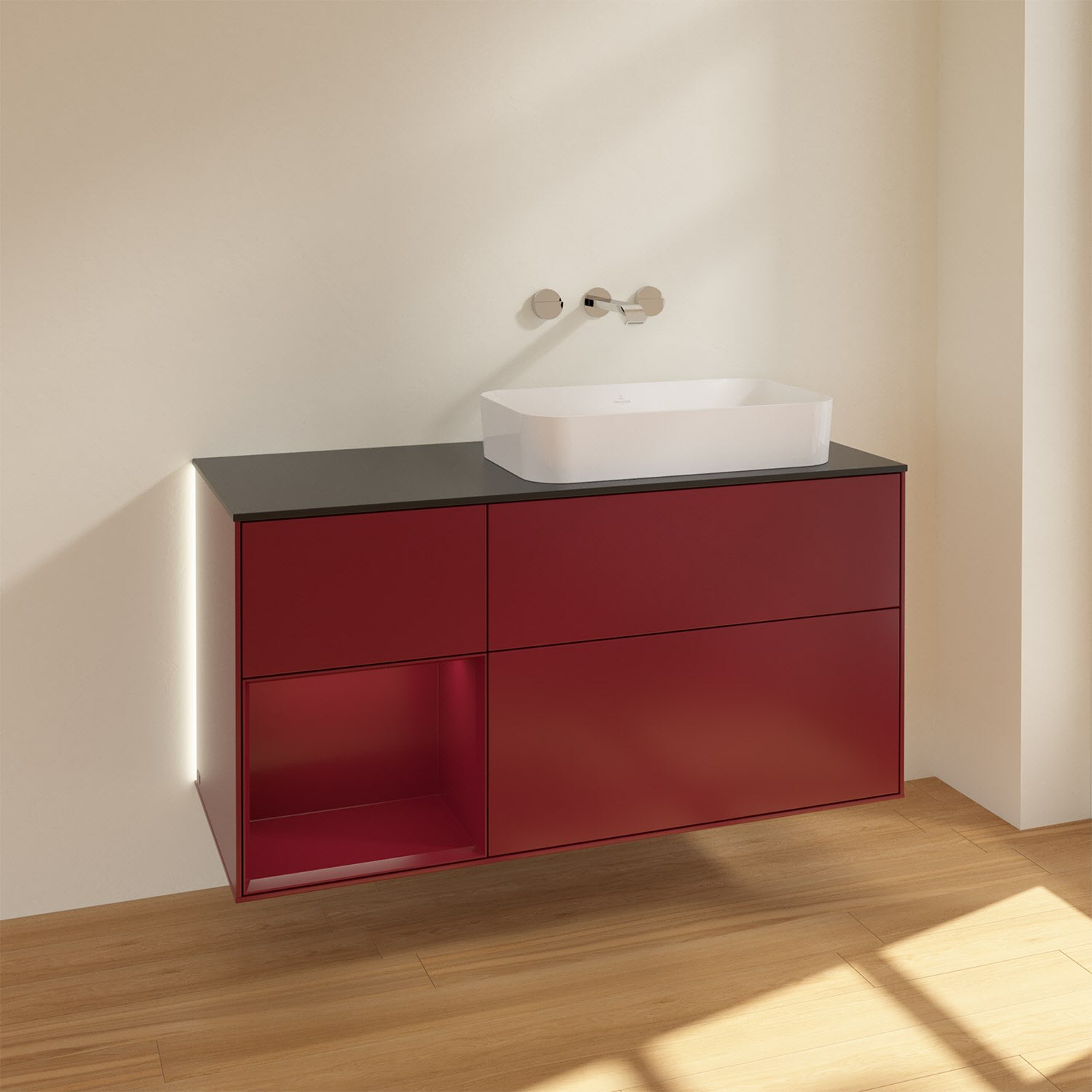 Villeroy & Boch Finion Waschtischunterschrank 120 cm mit Regalelement links und Abdeckplatte, mit Wandbeleuchtung