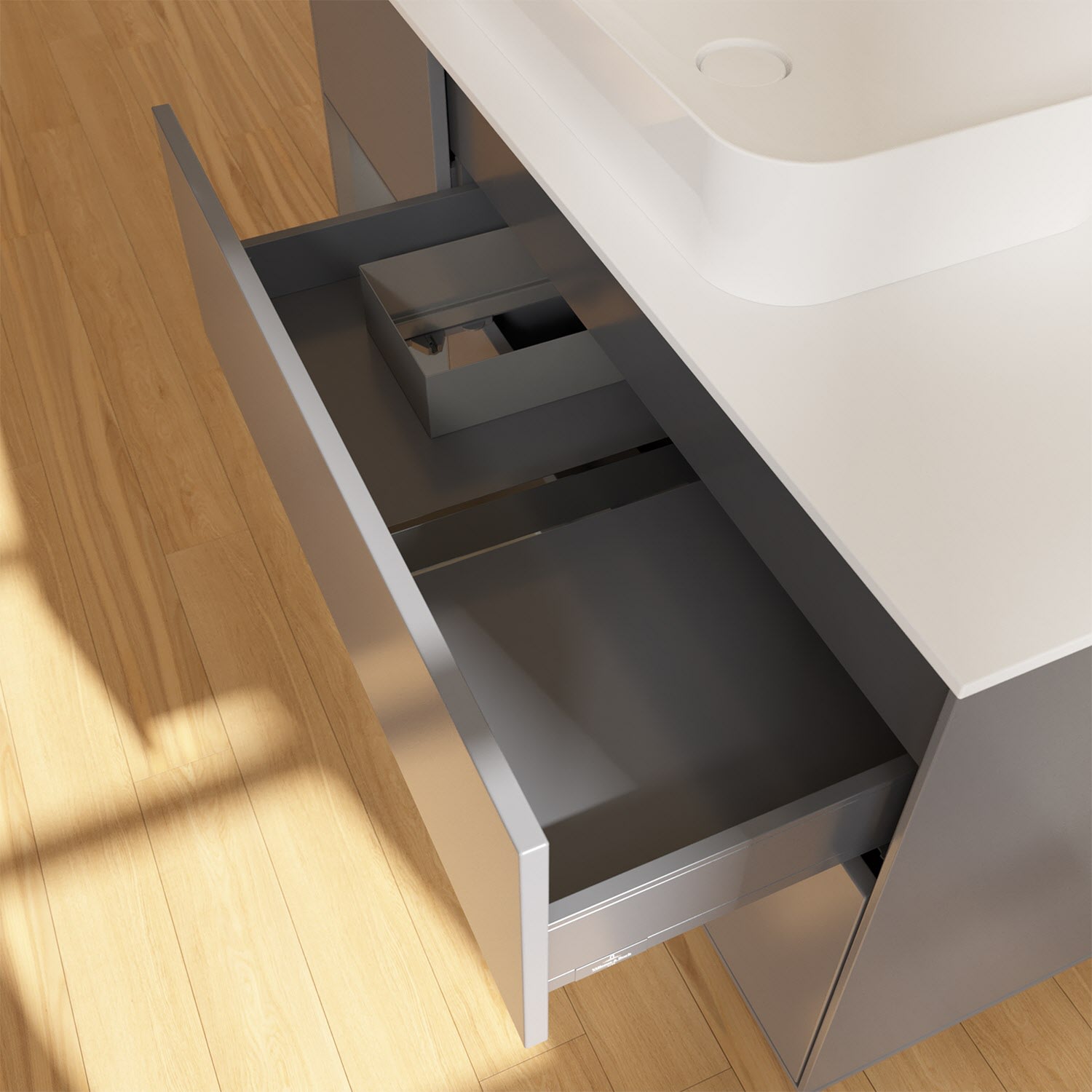 - kein Umfallen oder Verrutschen von Pflegeprodukten in den Schubladen dank rutschhemmendem Boden