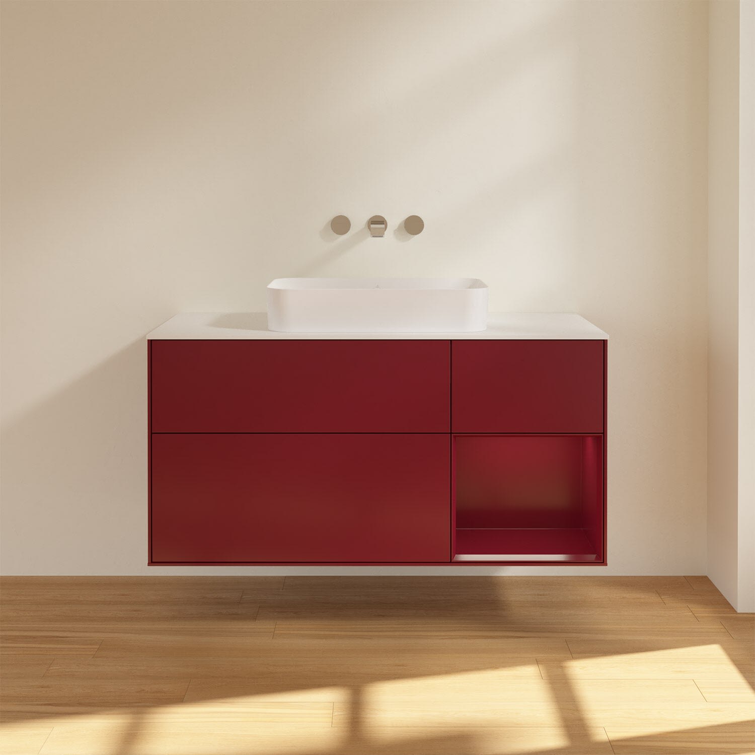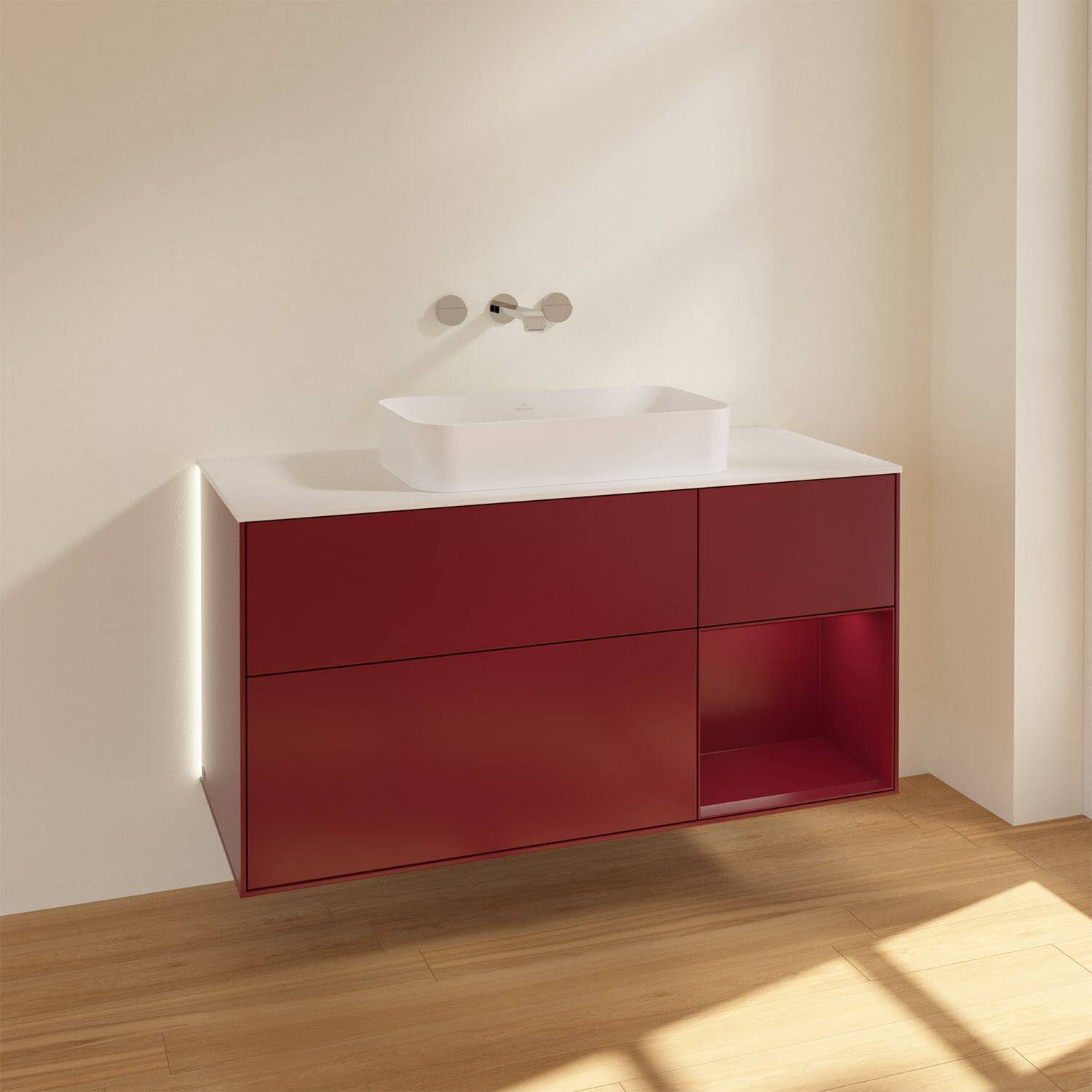 Villeroy & Boch Finion Waschtischunterschrank 120 cm mit Regalelement rechts und Abdeckplatte, mit Wandbeleuchtung
