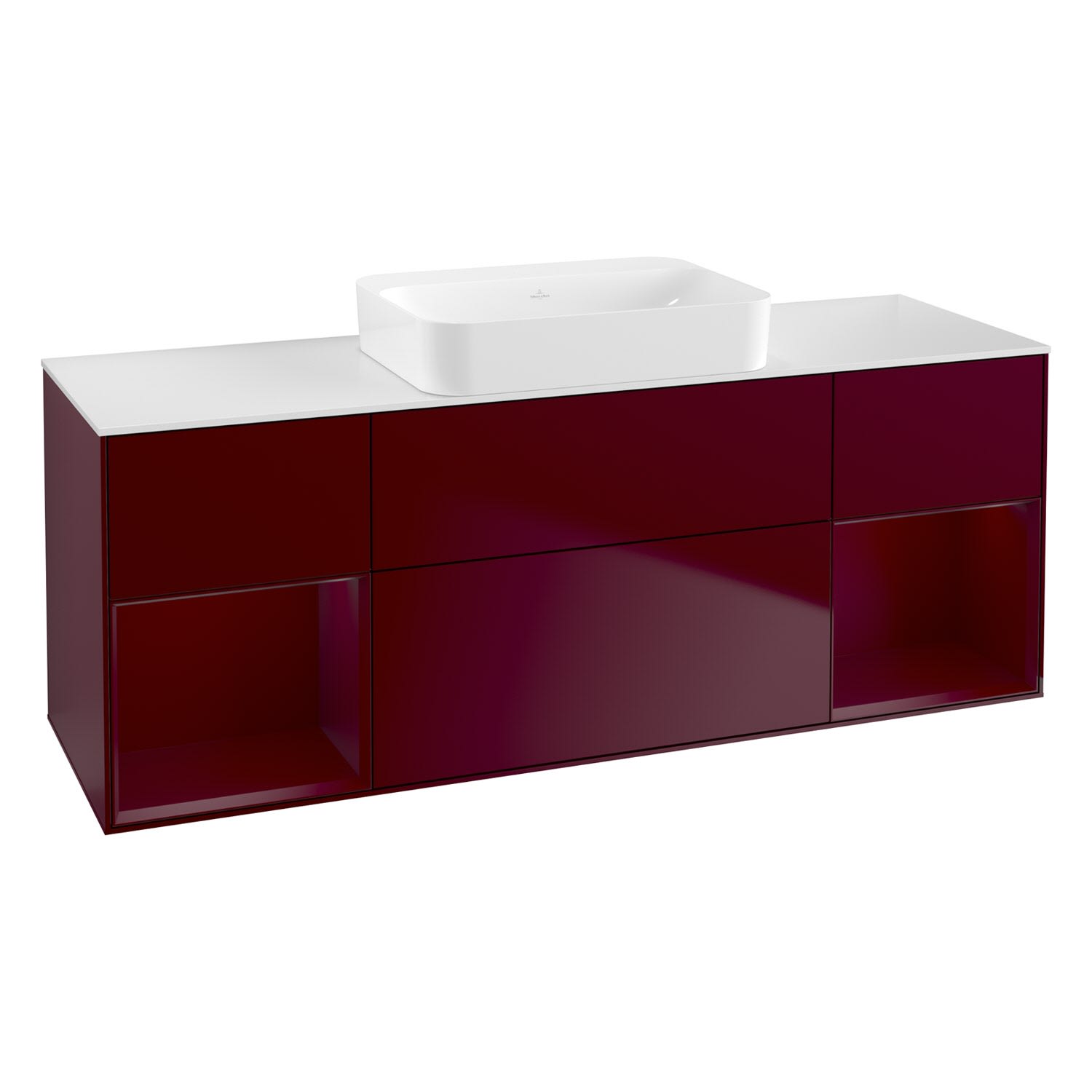 Villeroy & Boch Finion Waschtischunterschrank 160 cm mit Regalelement links und rechts und Abdeckplatte, mit Wandbeleuchtung