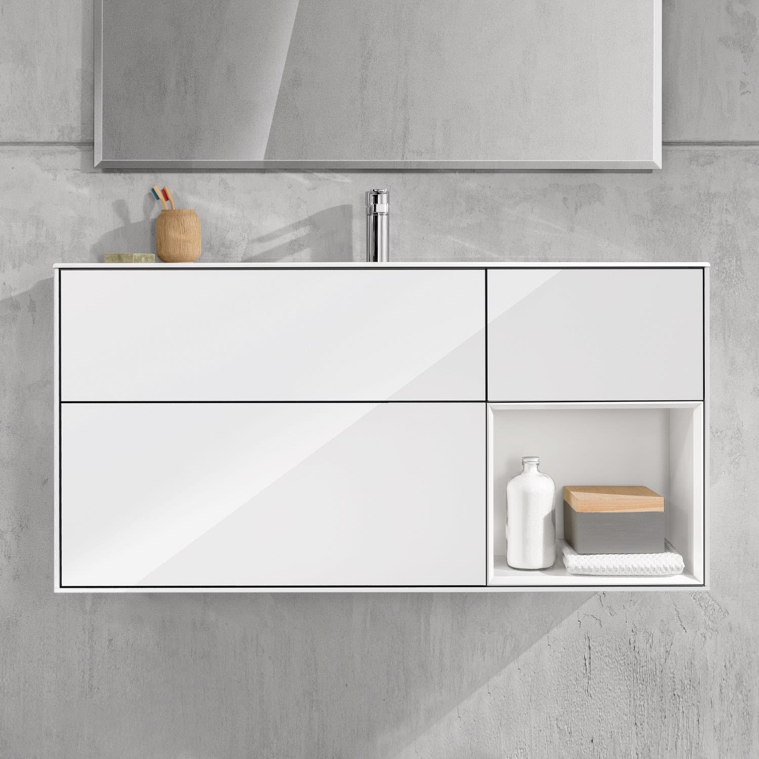 Villeroy & Boch Finion Waschtischunterschrank 119,6 cm mit Regalelement rechts, 3 Auszügen