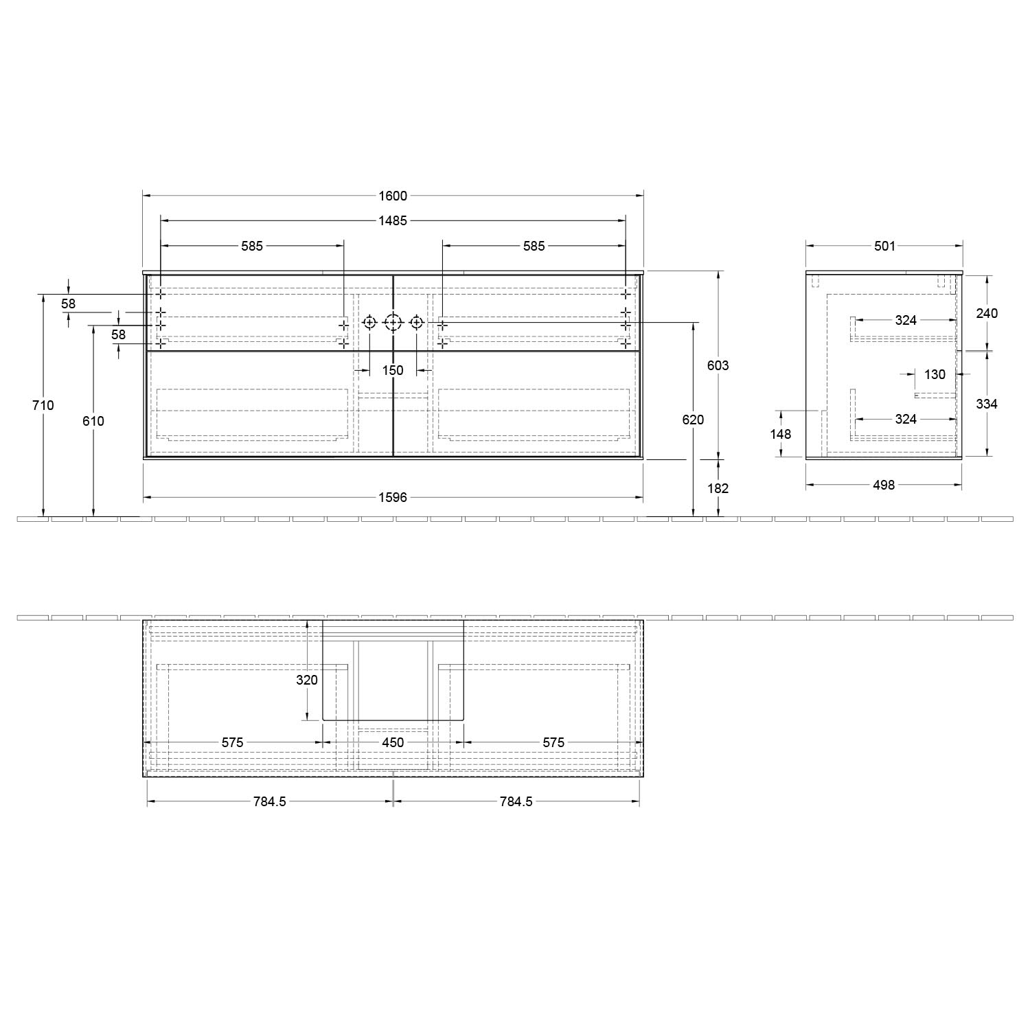 Villeroy & Boch Finion Waschtischunterschrank 160 cm mit Abdeckplatte