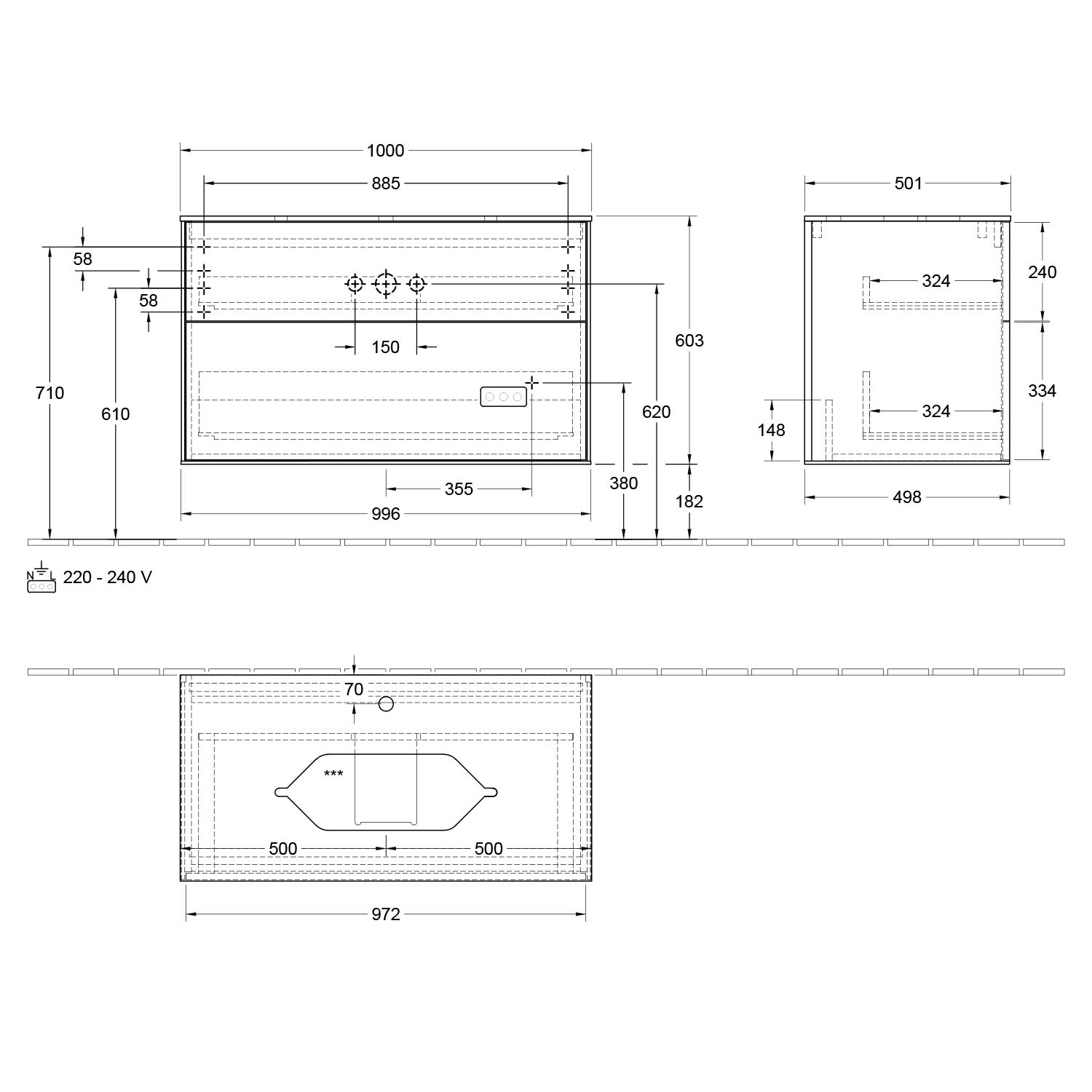 Villeroy & Boch Finion Waschtischunterschrank 100 cm mit Abdeckplatte und LED Wandbeleuchtung